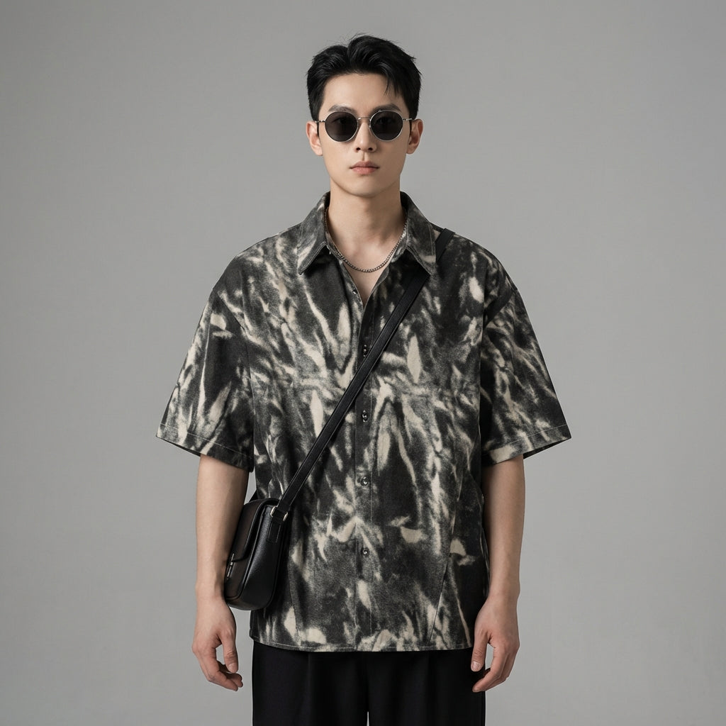 Adotta un look trendy e casual con la nostra camicia oversize a maniche corte. Il suo design unico con schizzi d'inchiostro e un colletto risvoltato aggiunge un tocco di originalità al tuo guardaroba. Perfetta per uno stile urbano deciso! 🚀