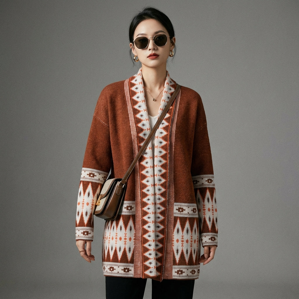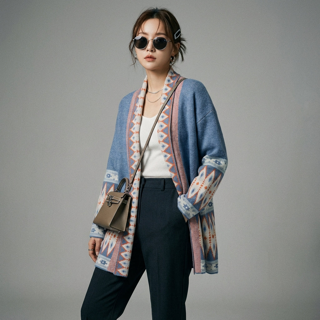 Adotta un look casual ed elegante con il nostro cardigan lungo in maglia ampia. Ideale per la stratificazione e per aggiungere un tocco di stile ai tuoi outfit. Il suo motivo geometrico e il taglio fluido lo rendono un capo essenziale della moda coreana! ✨