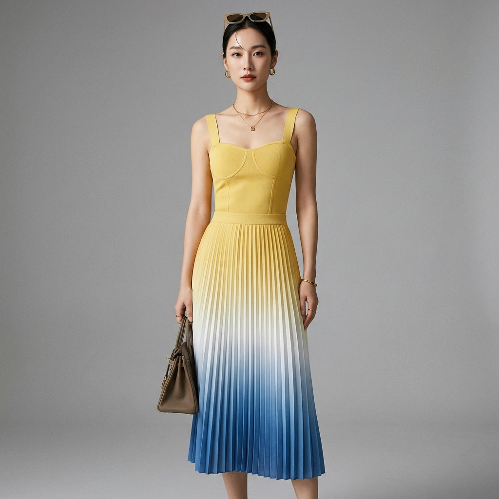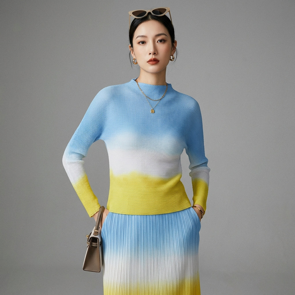 Afferma il tuo stile con questo completo moderno ed elegante, composto da un top testurizzato e una gonna lunga plissettata. Ideale per un look sofisticato e di tendenza in ogni occasione! ✨