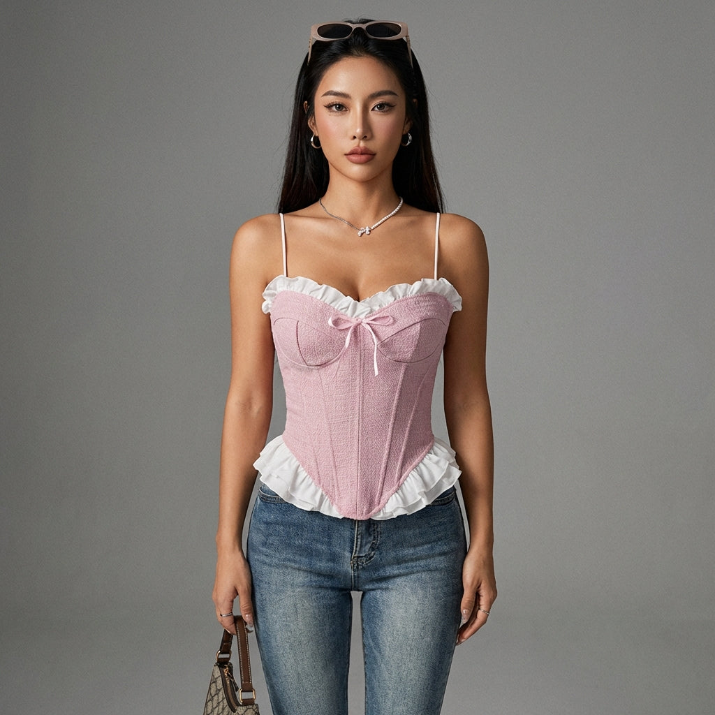 Scopri il nostro delicato crop top corsetto, perfetto per uno stile chic e di tendenza. Con le sue finiture curate e il suo design strutturato, valorizzerà la tua silhouette con eleganza. Ideale per le giornate di sole o le serate estive! 🌸