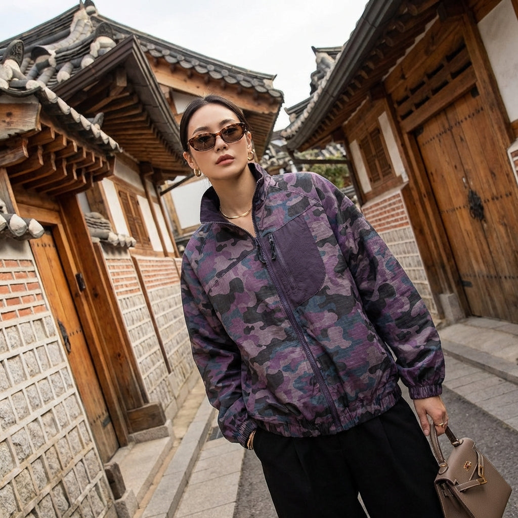 - Stile: Streetwear, Tendenza, K-fashion. Questa giacca incarna il dinamismo della moda urbana coreana, con un tocco militare rivisitato.