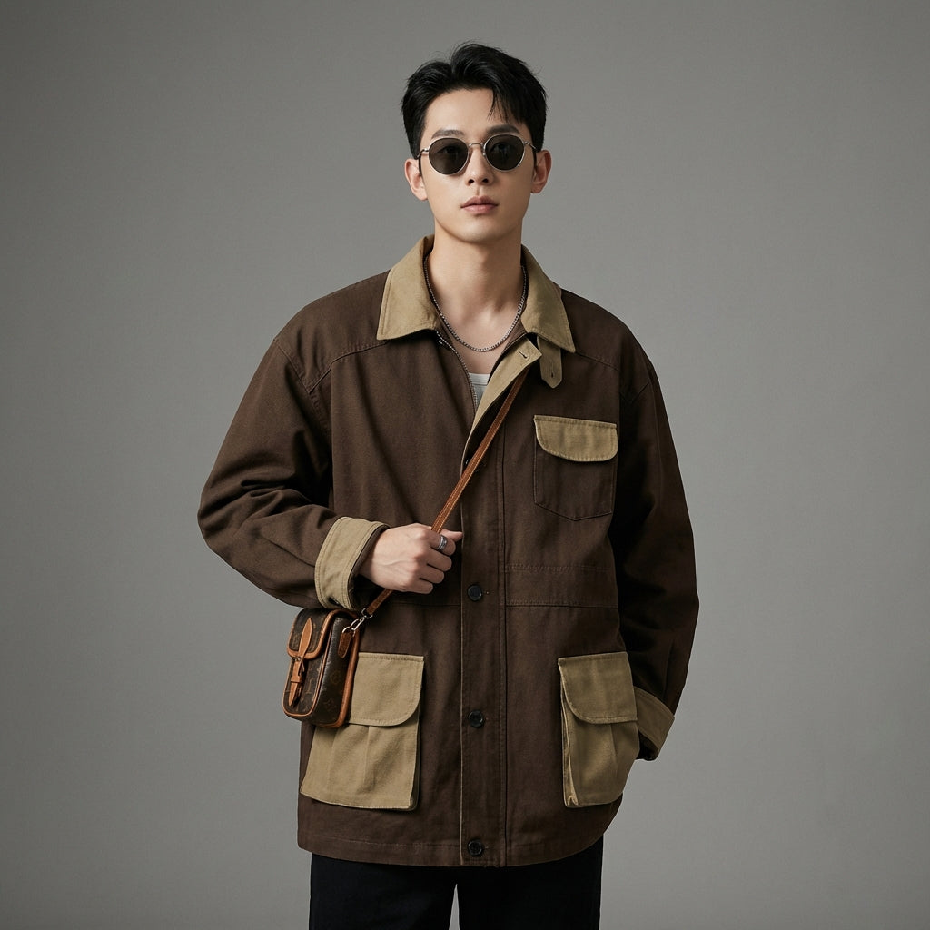 Adotta un look casual ed elegante con la nostra giacca da lavoro da uomo di media lunghezza. Caratterizzata da molteplici tasche e un colletto rovesciato, questa giacca offre una vestibilità ampia e confortevole, perfetta per tutte le tue attività quotidiane. Il suo design color block aggiunge un tocco moderno e audace al tuo guardaroba! 🍂