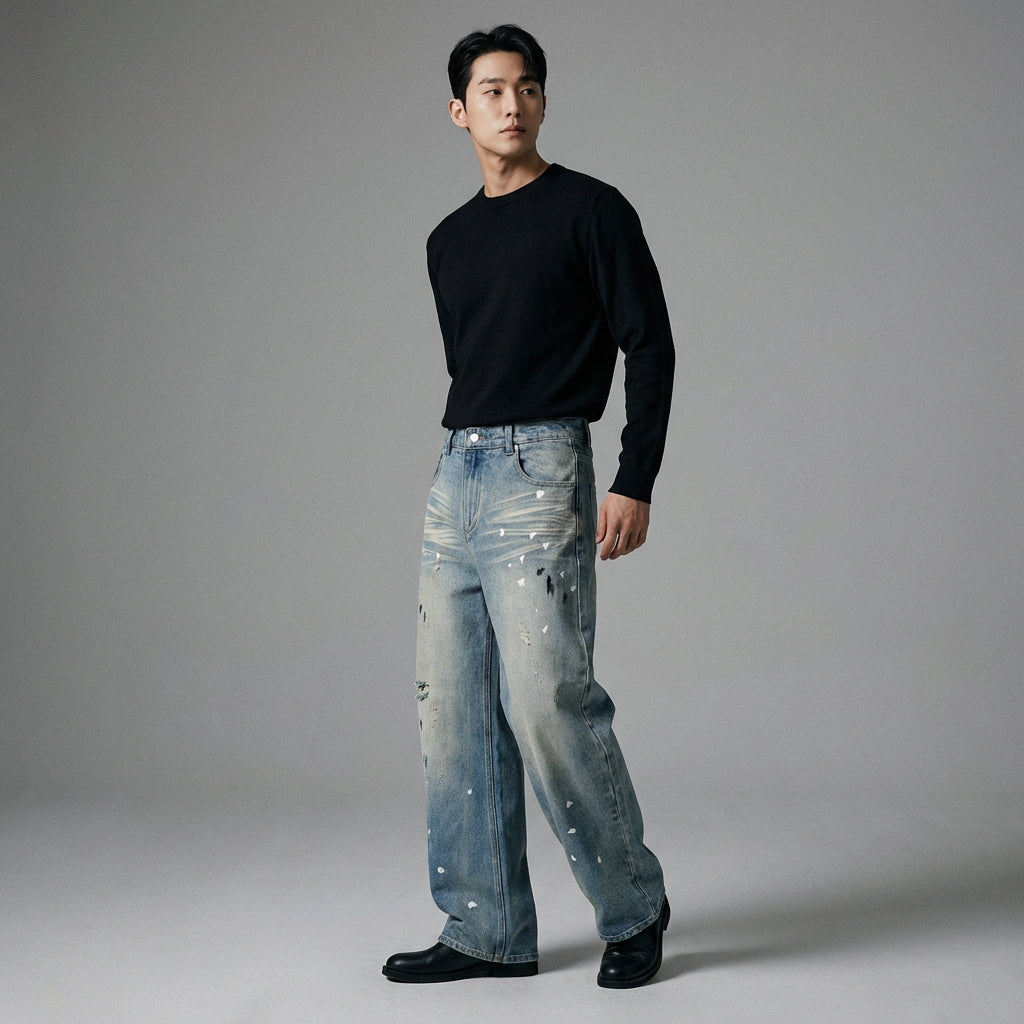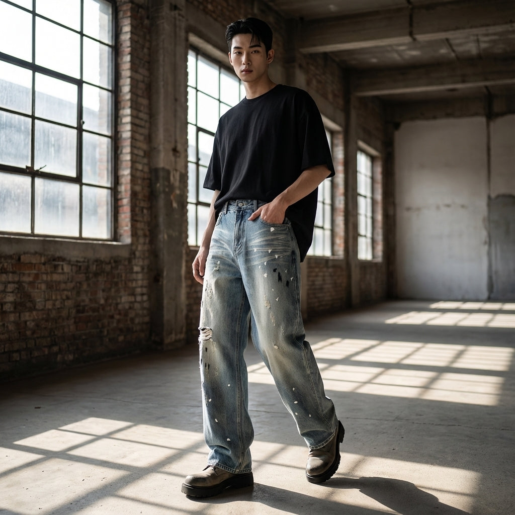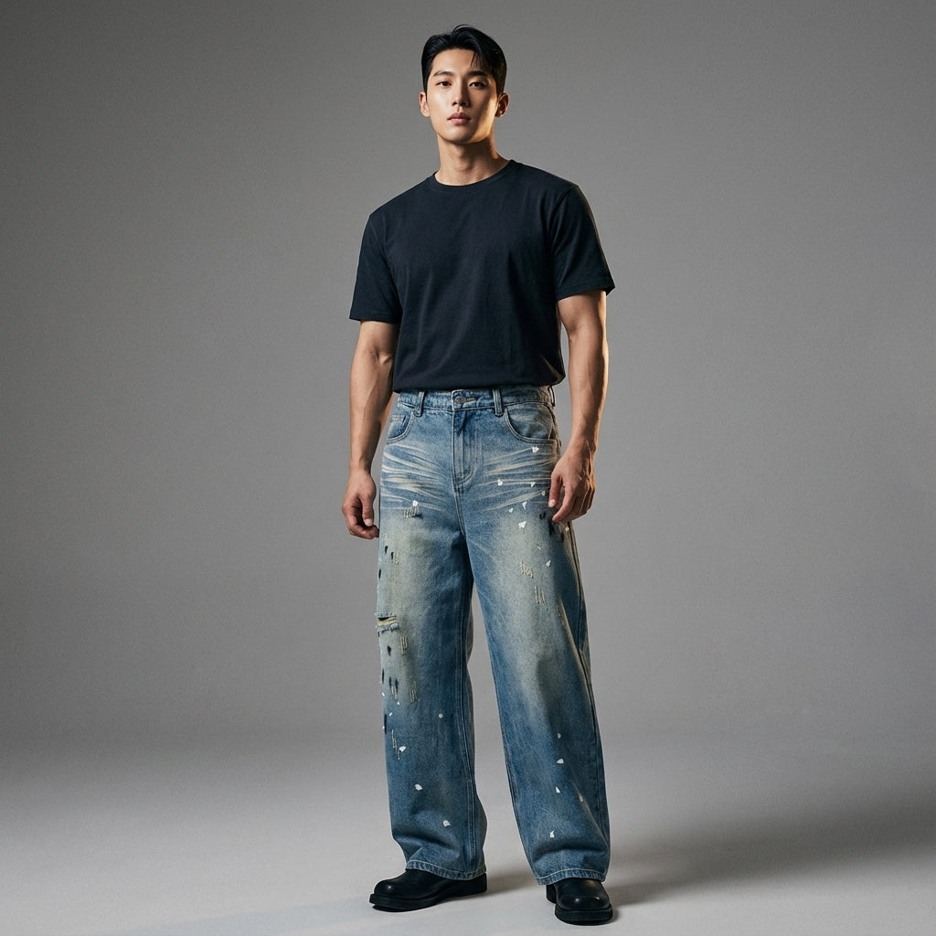 - Stile: Streetwear, Retrò, K-fashion. Questi jeans incarnano lo spirito casual e audace della moda urbana coreana, con un tocco vintage.
