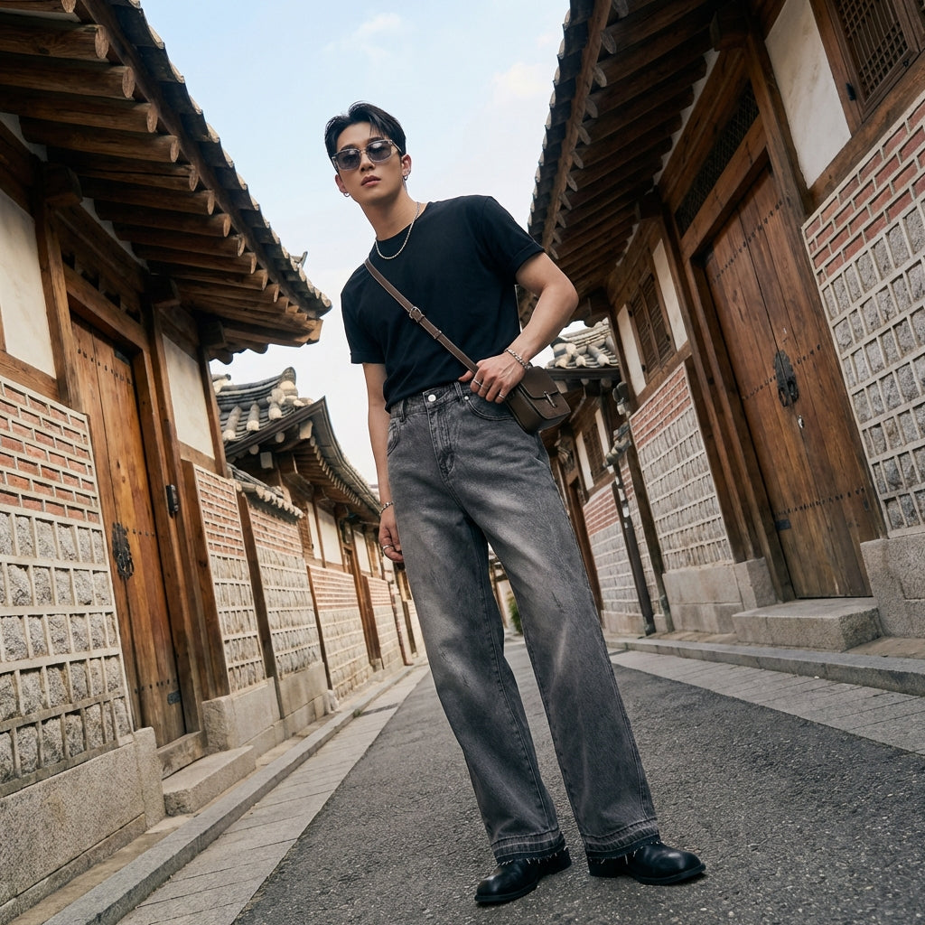 • Stile: Streetwear, Tendenza, K-fashion. Ispirato alla moda urbana coreana, questo jeans è un must-have per un look casual e stiloso.