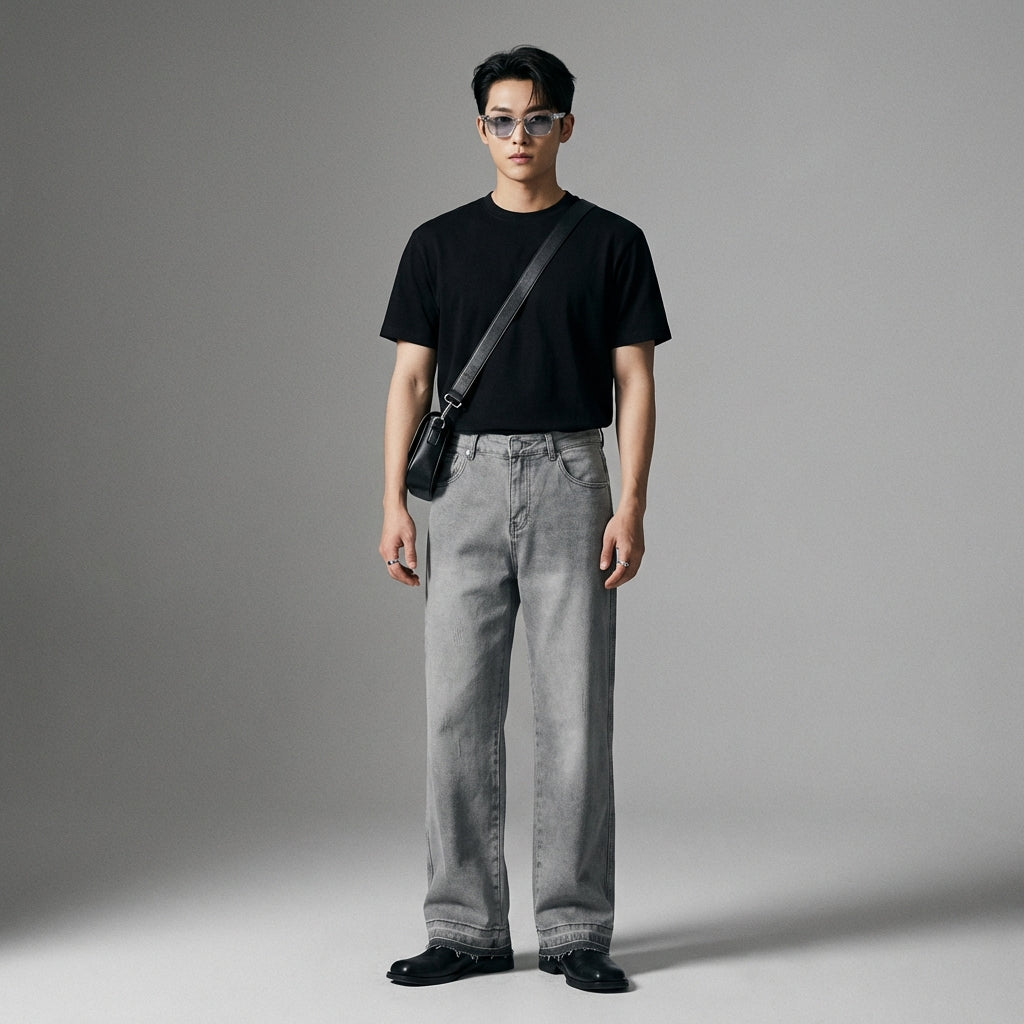 Jean droit délavé gris homme - Koreanxwear