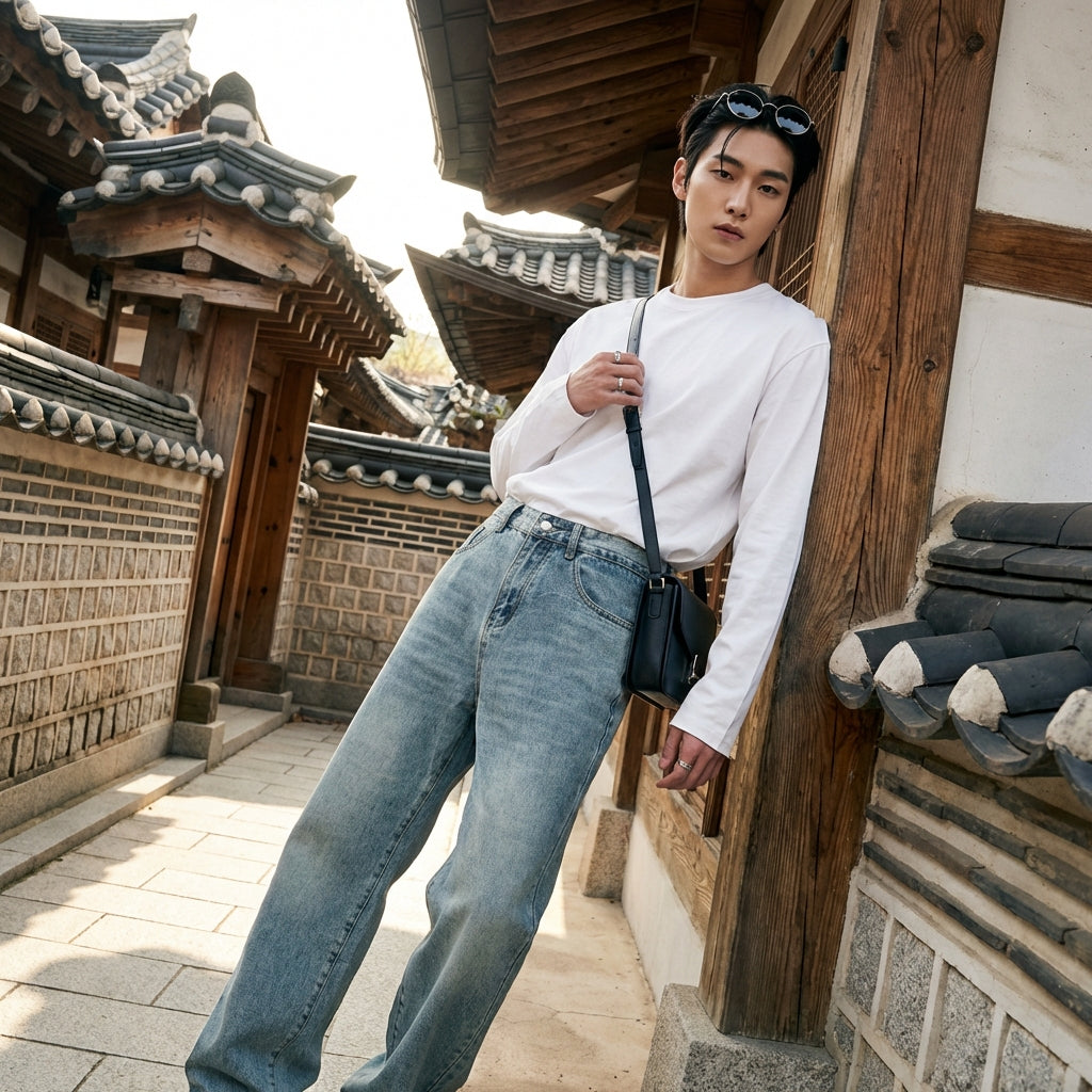 Questi jeans sono un capo versatile che ti accompagnerà in tutti i tuoi look, dai più semplici ai più sofisticati, apportando sempre un tocco di autentico stile coreano.
