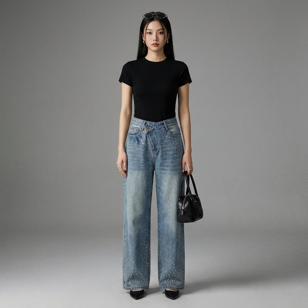 Questi jeans dritti vintage sono il capo perfetto per completare i tuoi outfit, che siano chic o casual, assicurandoti uno stile impeccabile e un comfort ineguagliabile.