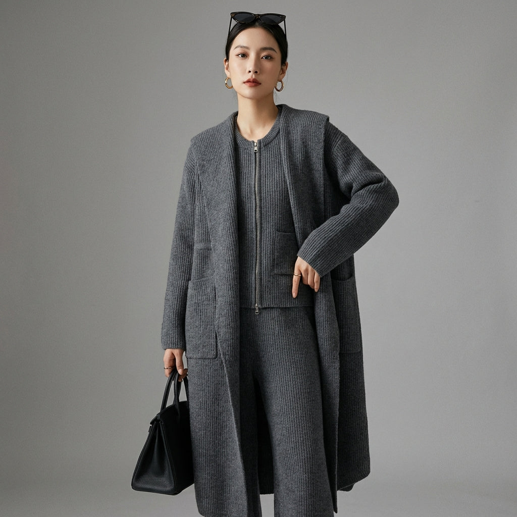 Questo maglione in maglia è un capo essenziale per chi cerca un indumento allo stesso tempo comodo, elegante e facile da abbinare, riflettendo l'essenza della moda coreana moderna.
