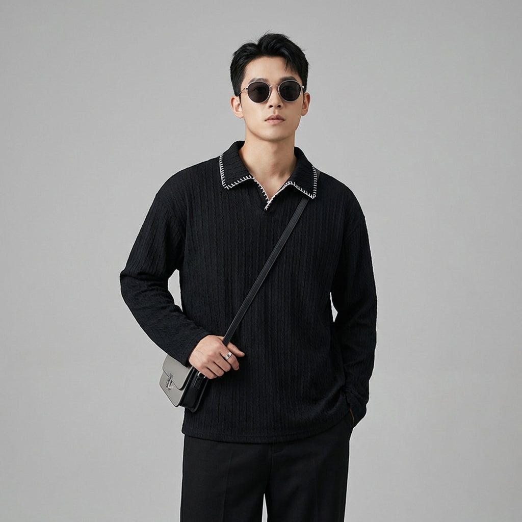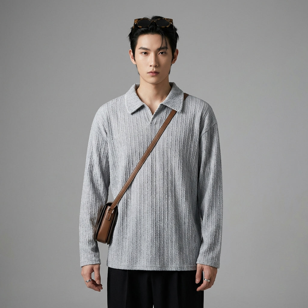 Adotta lo stile casual e di tendenza con la nostra T-shirt a maniche lunghe e colletto a revers. La sua vestibilità ampia assicura un comfort ottimale e libertà di movimento, perfetta per i tuoi look quotidiani. Un capo indispensabile della moda urbana! ✨