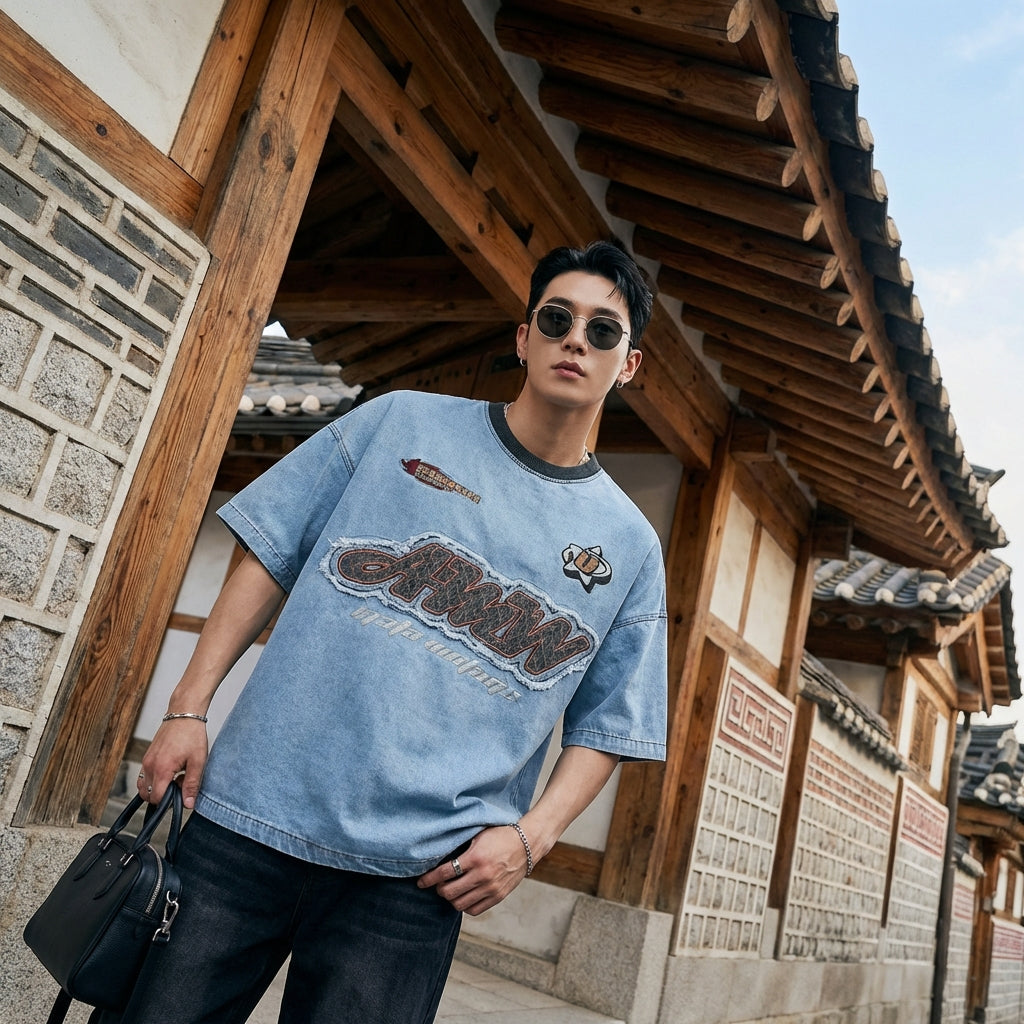 - Stile: Streetwear, Americano Retrò, K-fashion. Questa t-shirt incarna un'estetica urbana e casual, ispirata alle tendenze coreane e americane.