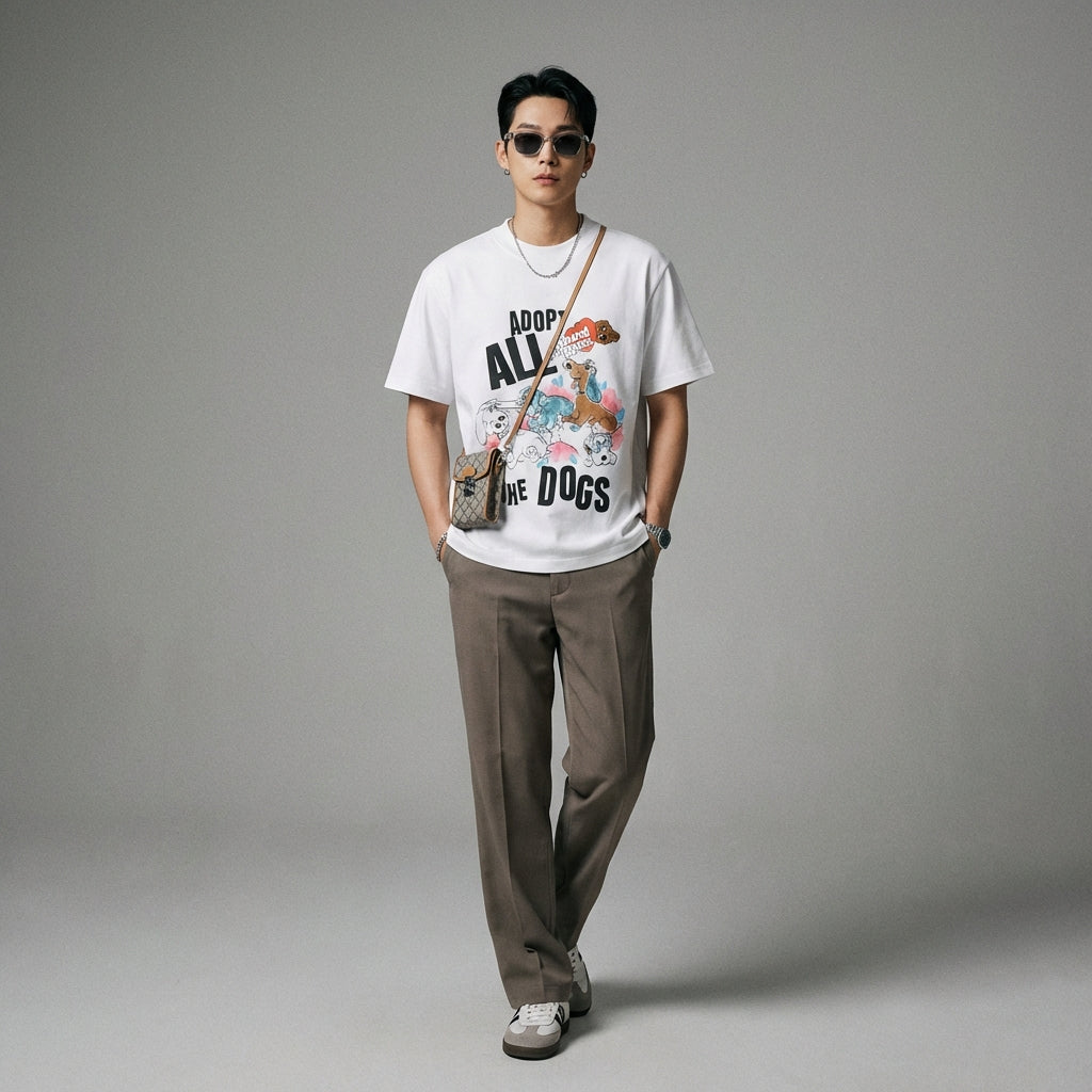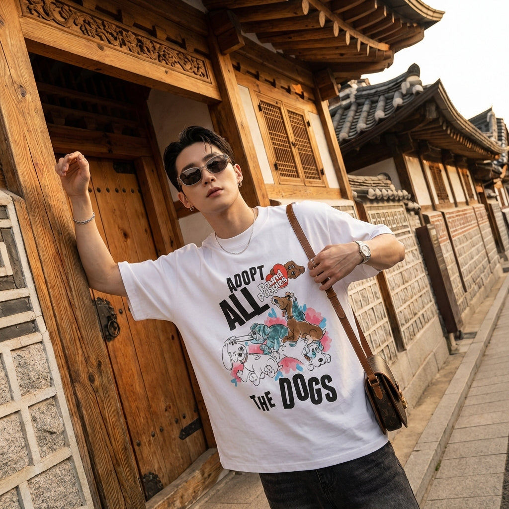 - Stile: Streetwear, K-fashion, Retro Giapponese. Questa t-shirt incarna lo spirito casual e alla moda dell'urban fashion, con un'ispirazione retro giapponese e un richiamo alla K-fashion.