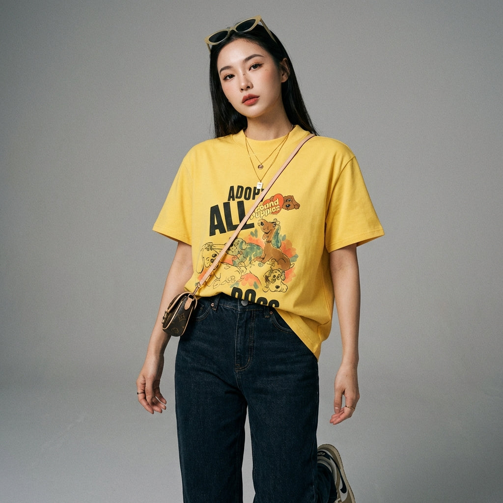 Questa T-Shirt Loose Cane Graffiti è il capo ideale per chi cerca comfort, originalità e un tocco di moda ispirato allo streetwear e alla K-fashion.