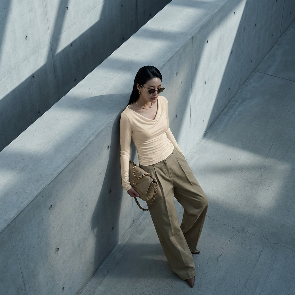 - Stile: Elegante, Minimalista, K-fashion. Questa T-shirt incarna l'eleganza discreta e le linee pulite della moda coreana, ideale per un outfit sofisticato.