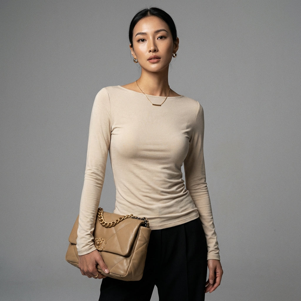 Adotta un look elegante e raffinato con la nostra T-shirt aderente a maniche lunghe e scollo a barca. Il suo taglio slim valorizzerà la tua silhouette per un look moderno e senza tempo! ✨