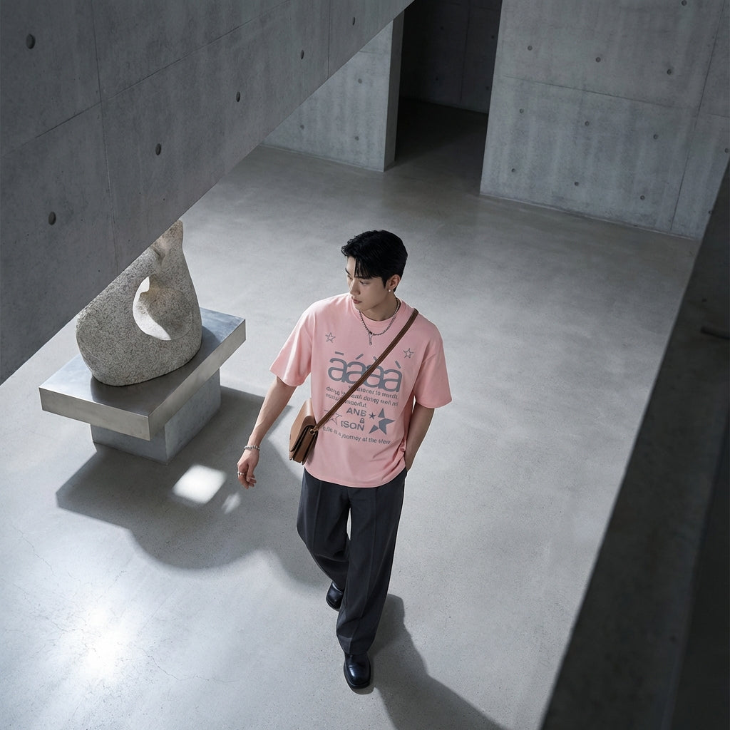 • Stile: Streetwear, K-fashion, Casual. Questa t-shirt incarna lo spirito libero e alla moda della moda coreana, ideale per un look urbano e moderno.