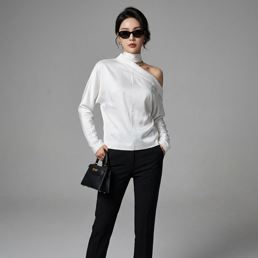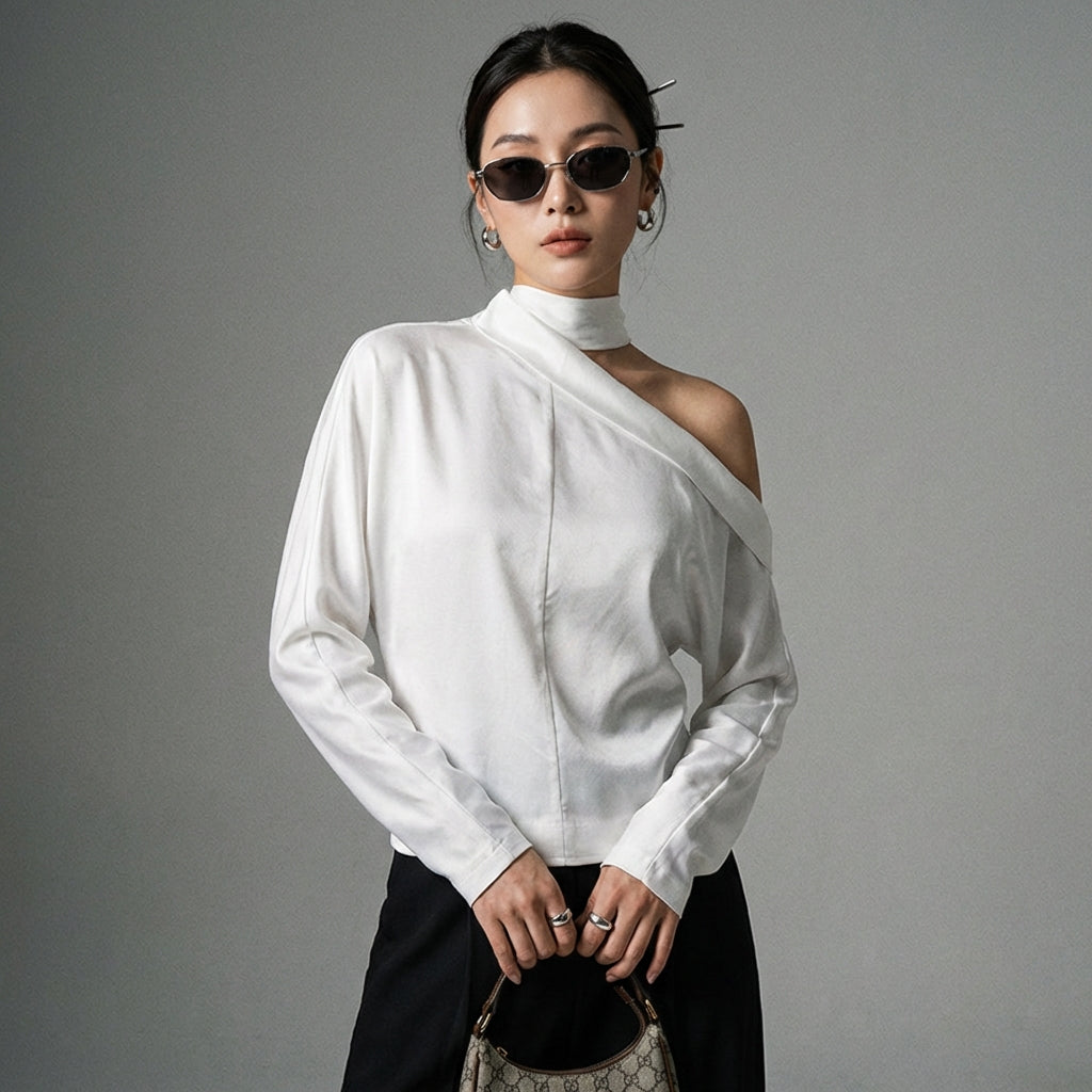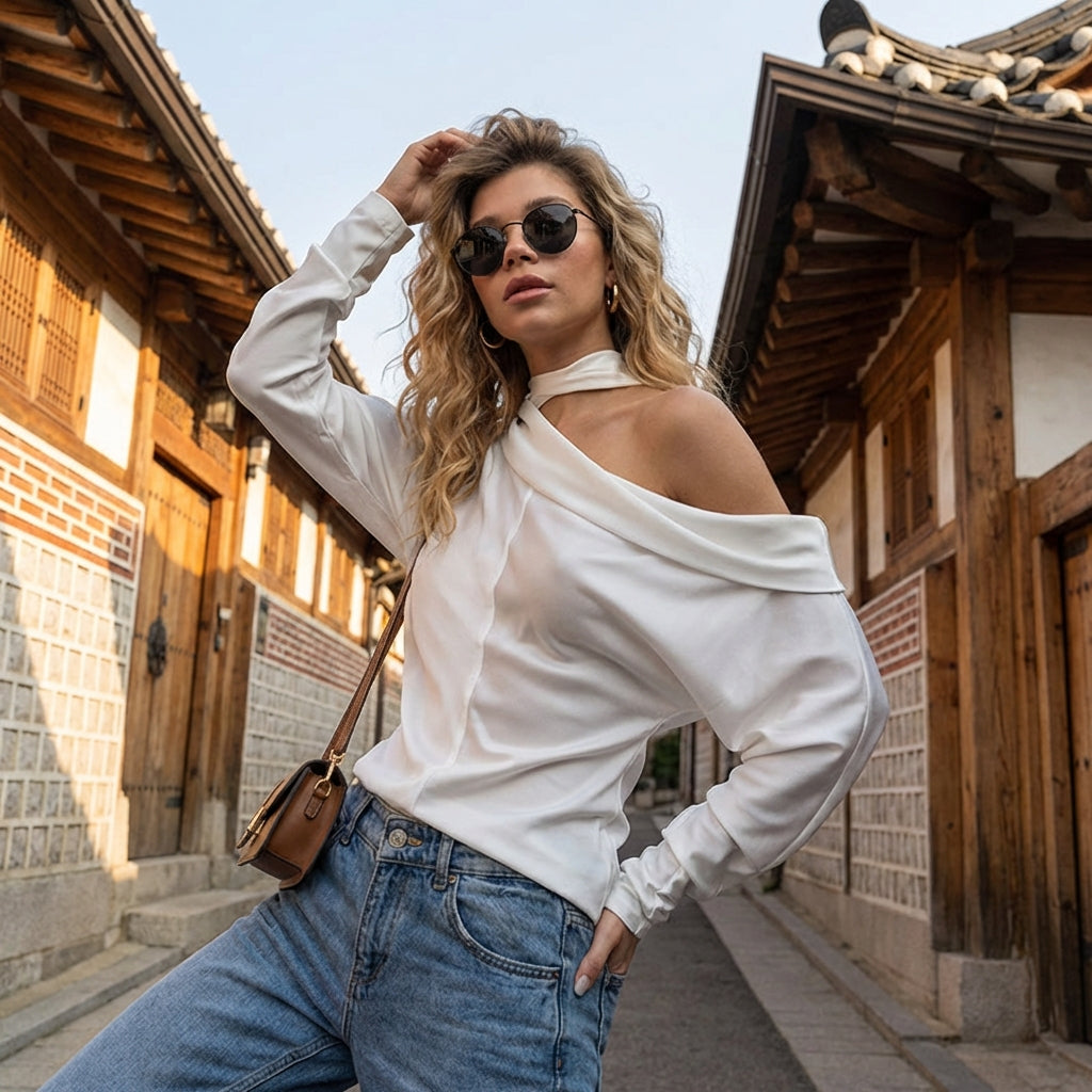 Adotta un look trendy e casual con il nostro top con scollo obliquo e maniche a pipistrello. Il suo taglio ampio e il design pulito lo rendono un capo versatile, ideale per uno stile urban chic! ✨