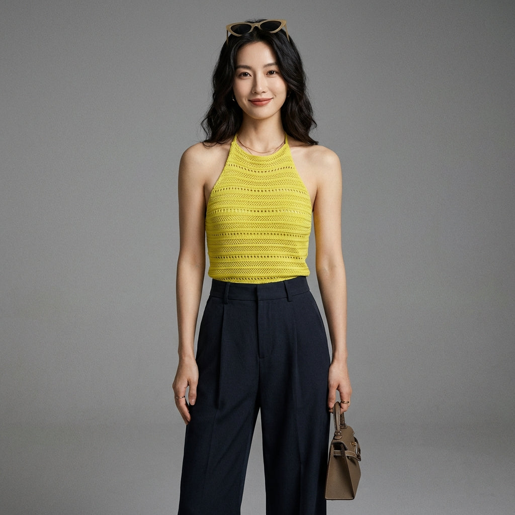 Adotta uno stile moderno e seducente con il nostro top in maglia traforato, perfetto per le belle giornate. Il suo design testurizzato e il taglio aderente valorizzano la silhouette con eleganza. Un must-have per un look fresco e alla moda! ✨