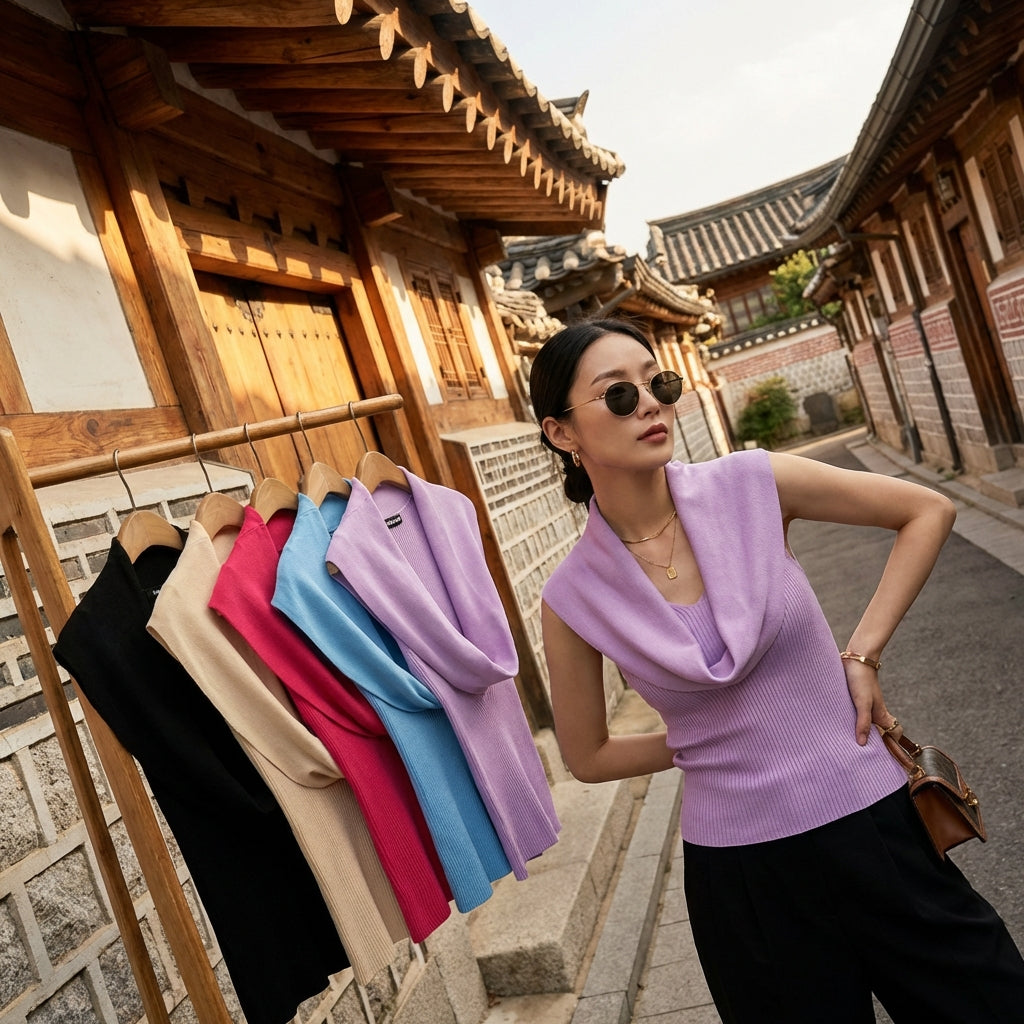 - Stile: Minimalista, K-fashion, Tendenza. Questo top incarna la semplicità raffinata della moda coreana, ideale per uno stile urbano o sofisticato.