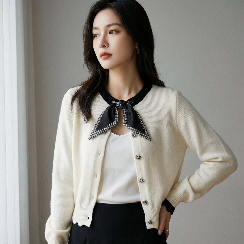 - Stile: Moda coreana, Elegante, Preppy. Questo cardigan incarna l'eleganza discreta e il fascino della moda coreana, perfetto per uno stile sia sofisticato che casual.