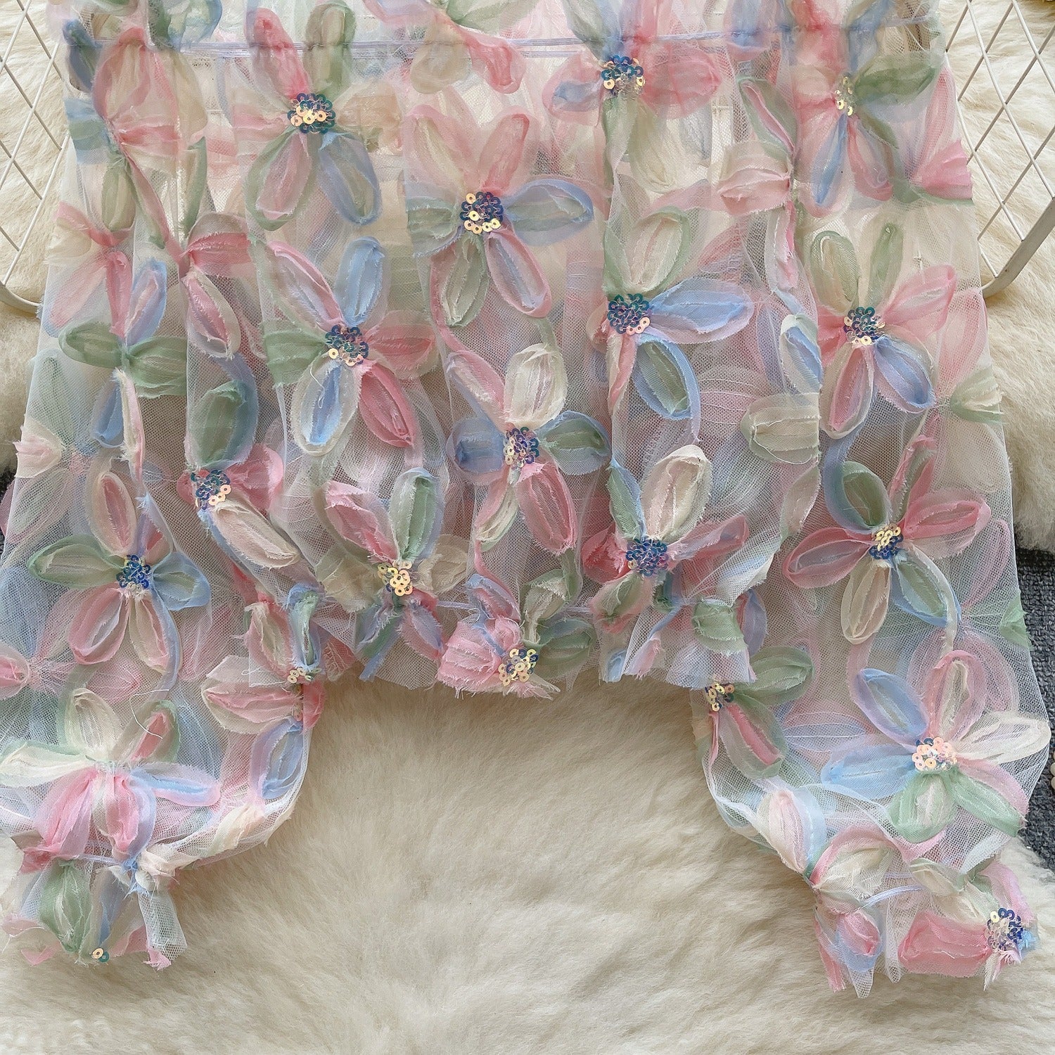Impreziosisci il tuo guardaroba estivo con la nostra blusa coreana monospalla con maniche a sbuffo. Realizzata in poliestere, questo capo leggero e fluido è decorato con fiori in rilievo per un tocco di dolcezza. Il suo design arioso ed elegante la rende un must-have per l'estate! 🌸