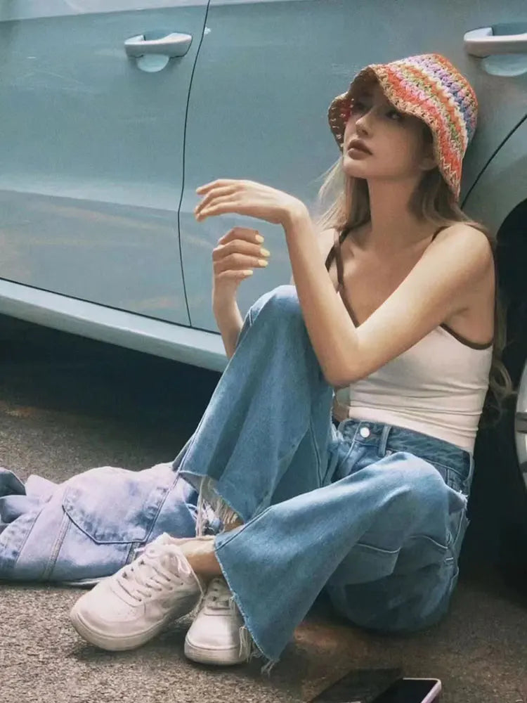 Scegli questo cappello di paglia per aggiungere un tocco di fascino coreano al tuo guardaroba estivo.