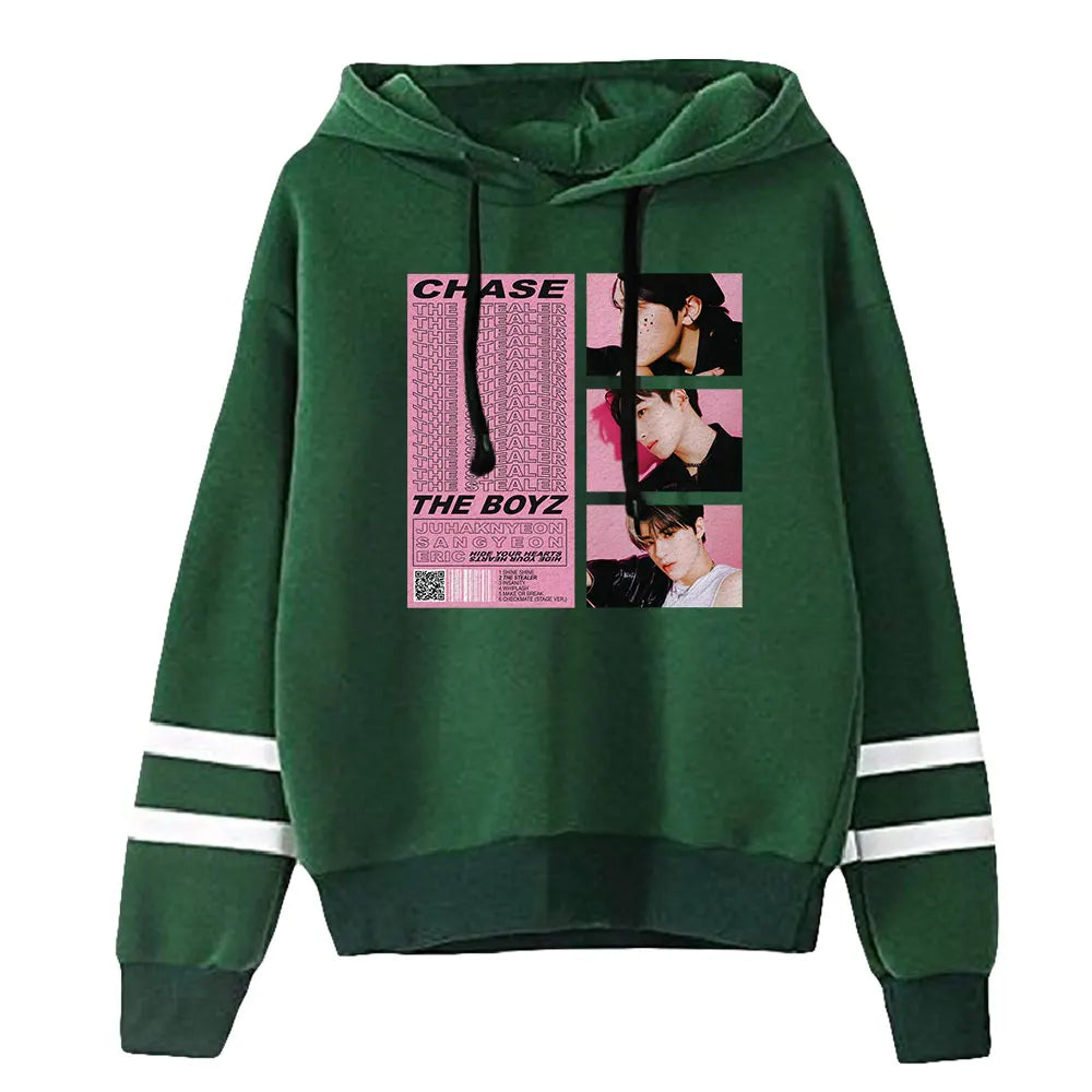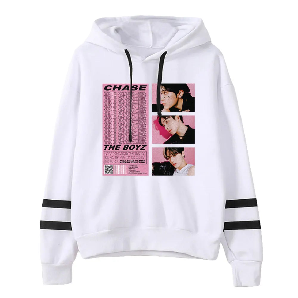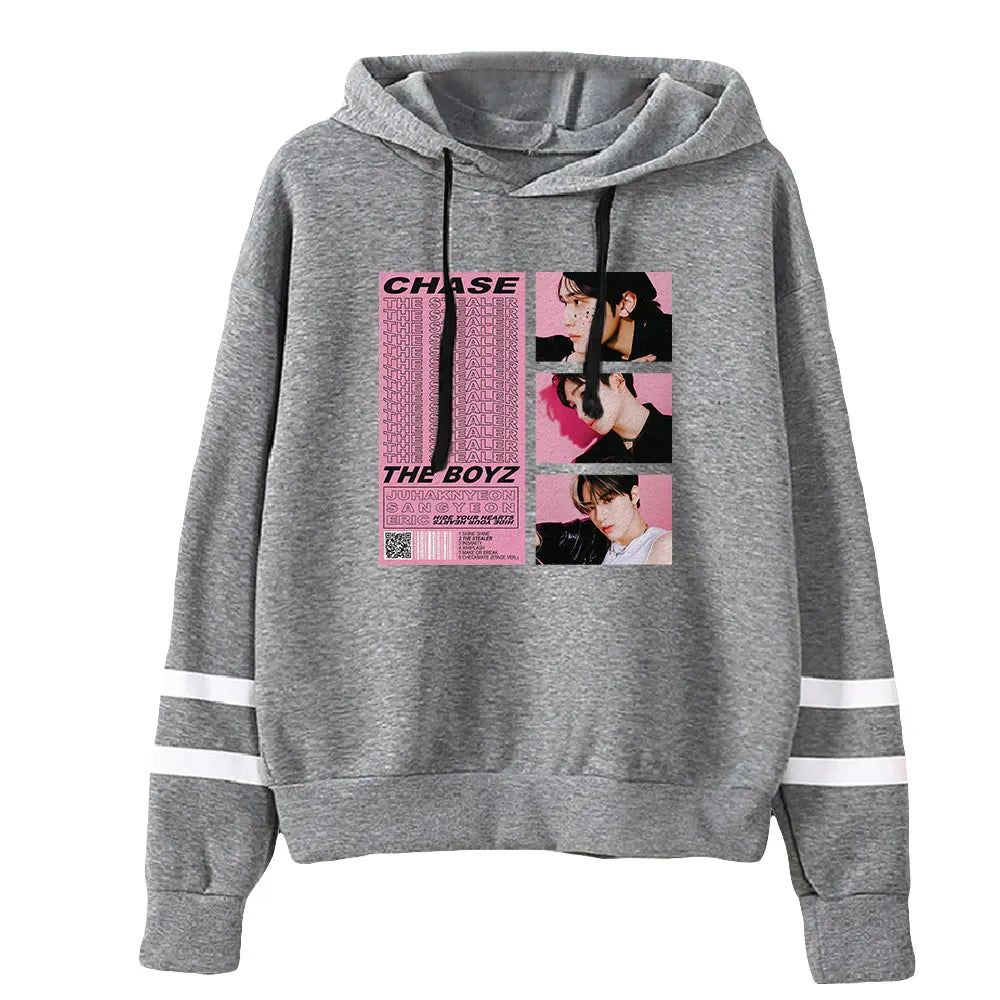 La Felpa con Cappuccio 'The Boyz CHASE' è un'edizione speciale dedicata all'iconico album del gruppo. Con un design audace e un approccio minimalista, questa felpa con cappuccio è un must-have per i fan sfegatati dei The Boyz e dell'era CHASE.
