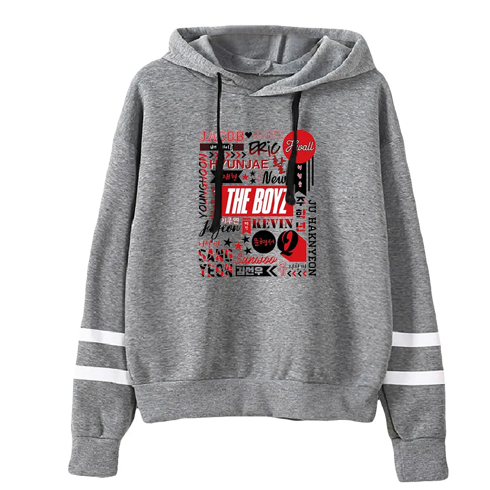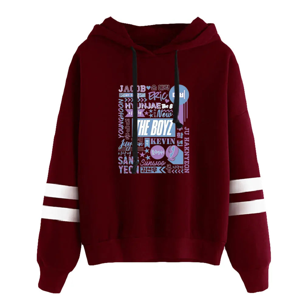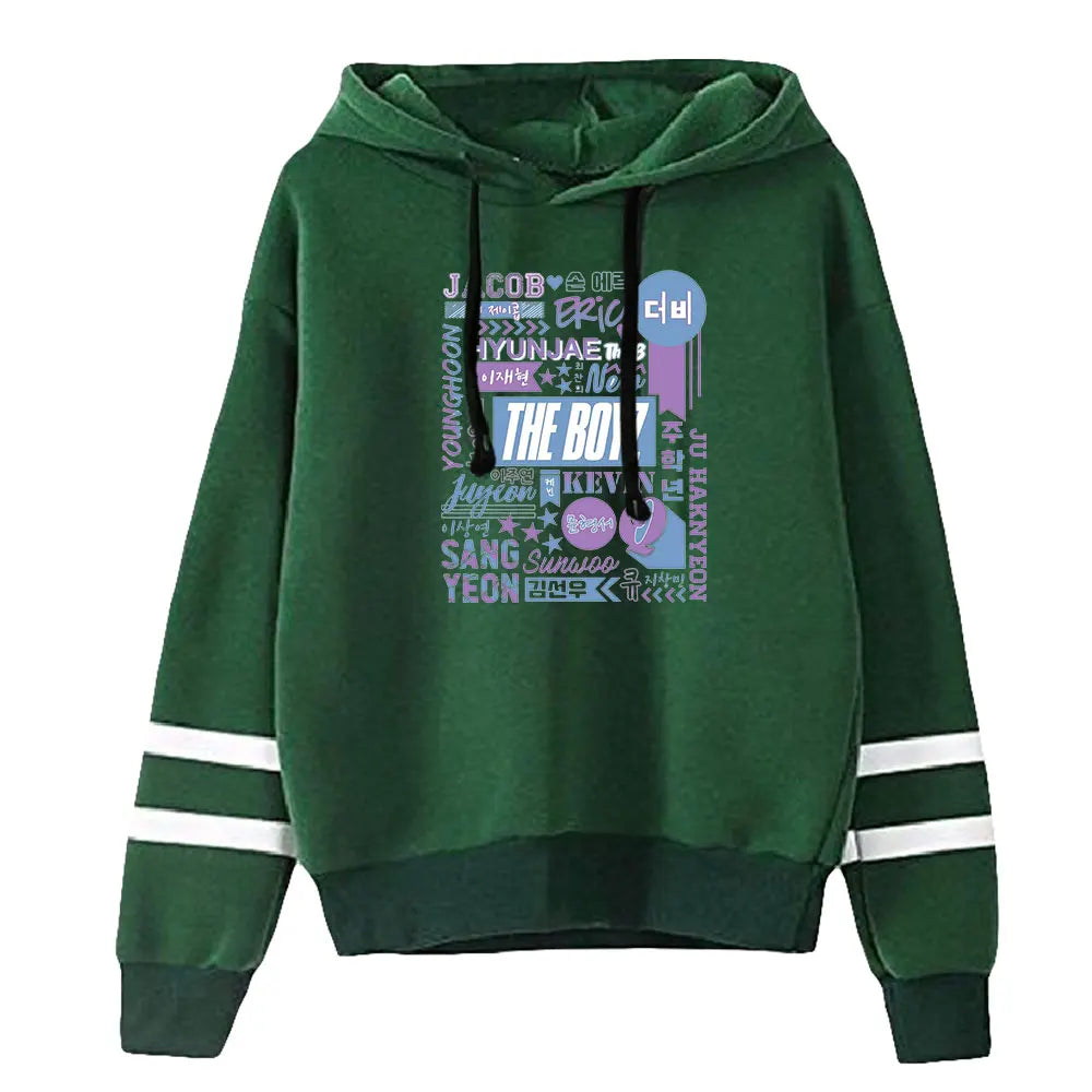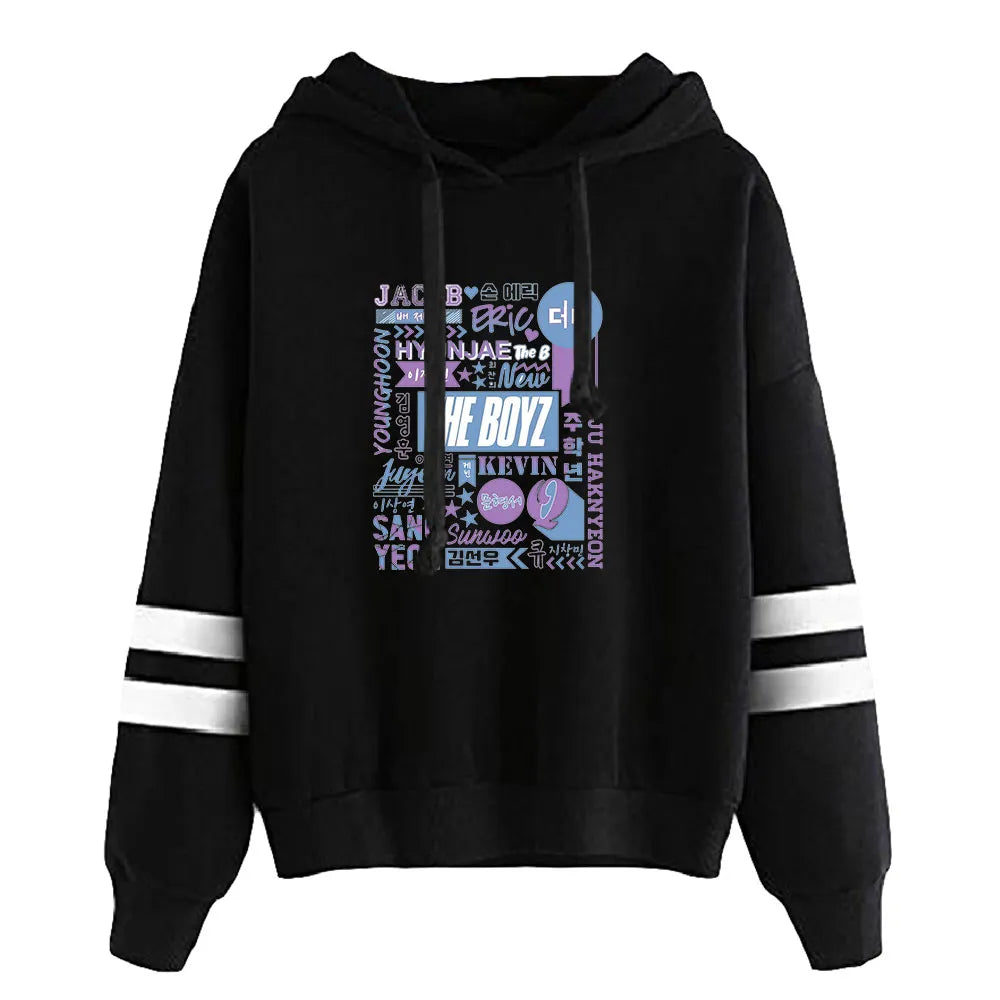 Celebra ogni membro dei The Boyz con la felpa con cappuccio 'The Boyz Names', un omaggio all'intera formazione del gruppo. Su questa felpa con cappuccio, i nomi di Sangyeon, Jacob, Younghoon, Hyunjae, Juyeon, Kevin, New, Q, Haknyeon, Sunwoo ed Eric sono mostrati con orgoglio, creando un pezzo da collezione inestimabile per i fan. È un modo elegante per mostrare il proprio sostegno e rimanere connessi allo spirito K-pop.