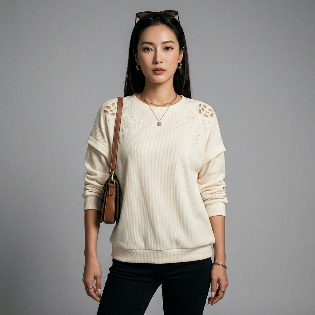 Adotta un look casual e stiloso con la nostra felpa girocollo a maniche lunghe. Il suo design unico con sottili intagli aggiunge un tocco di originalità a questo classico intramontabile. Perfetta per le tue giornate casual o le uscite con gli amici! ✨