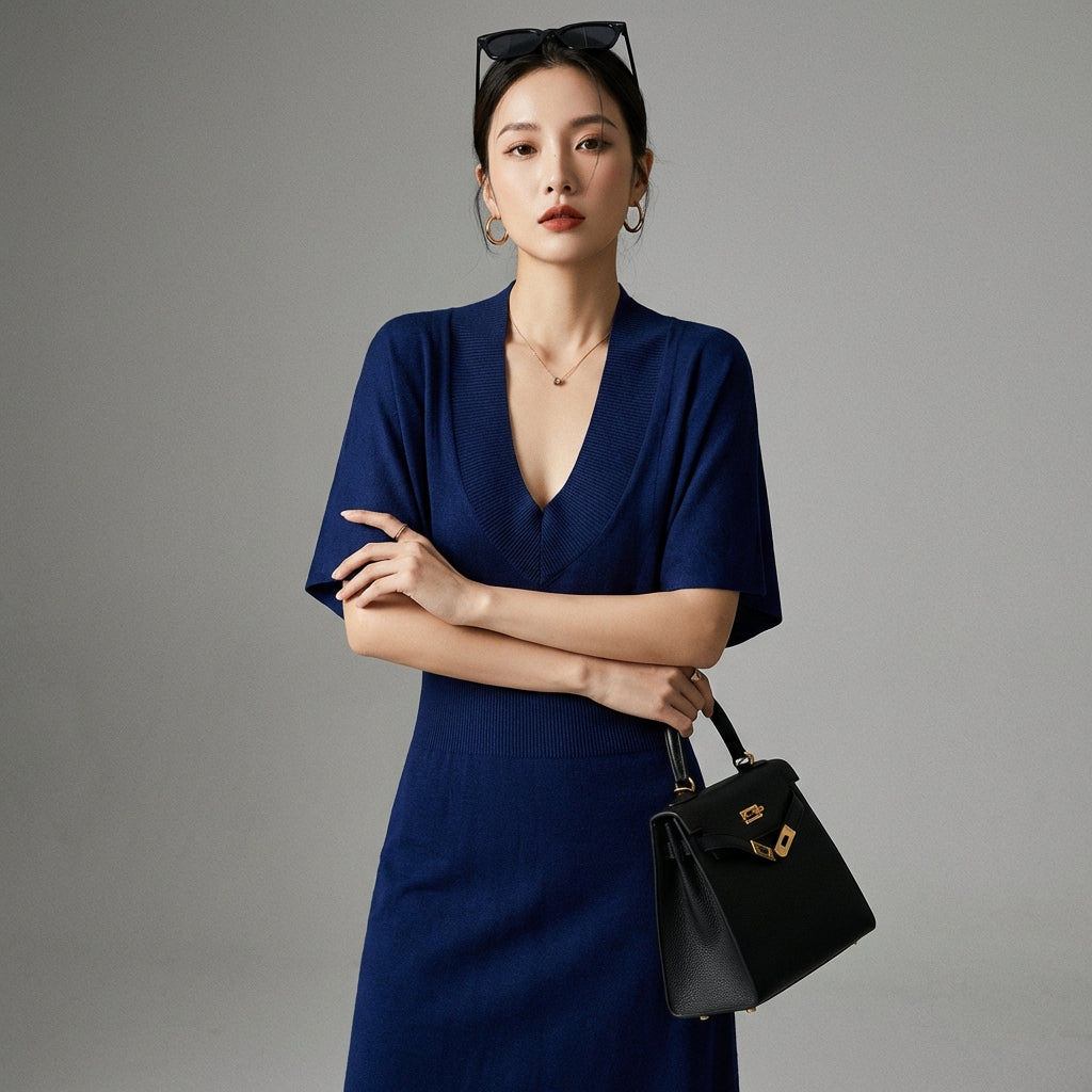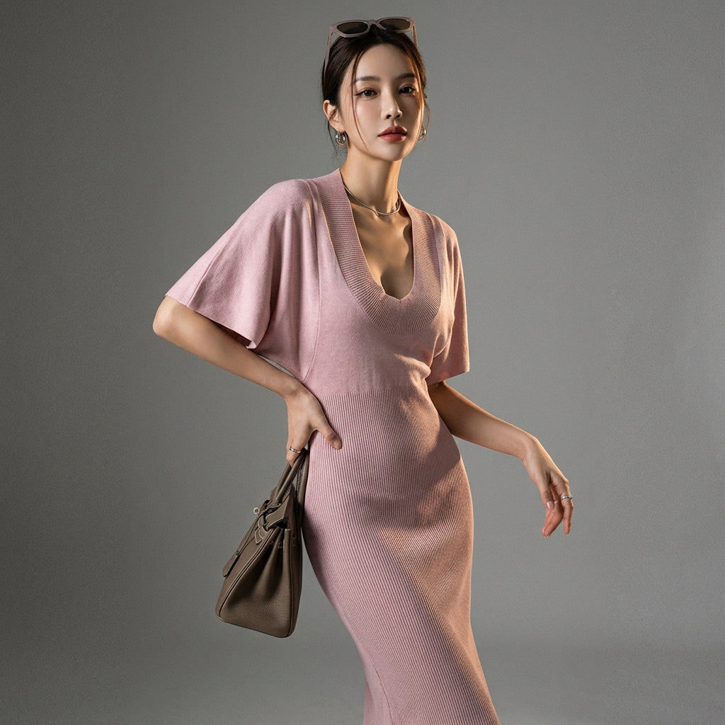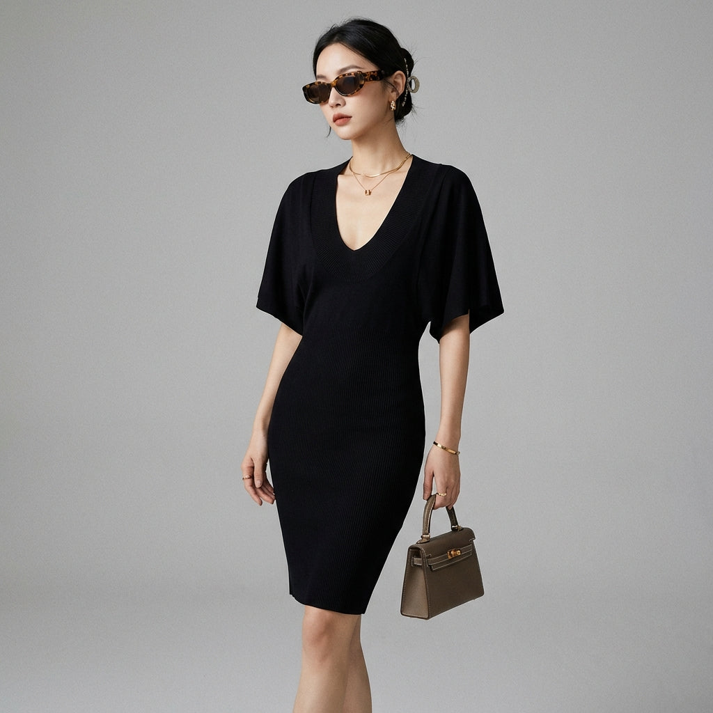 Adotta un look casual e chic con il nostro abito in maglia con scollo a U profondo e maniche a pipistrello. Il suo taglio ampio offre un comfort ottimale pur rimanendo decisamente alla moda. Perfetto per una silhouette moderna ed elegante! ✨
