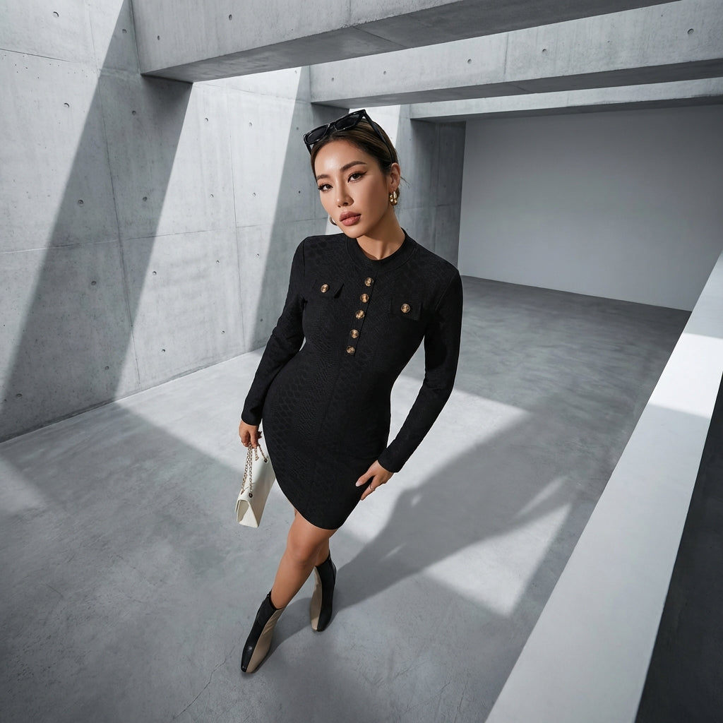 Afferma la tua eleganza con il nostro mini abito a collo alto, un capo essenziale per uno stile moderno e raffinato. Con le sue maniche lunghe e i dettagli abbottonati, questo abito slim fit è perfetto per tutte le occasioni casual, offrendoti una silhouette chic e confortevole! ✨
