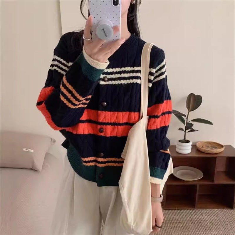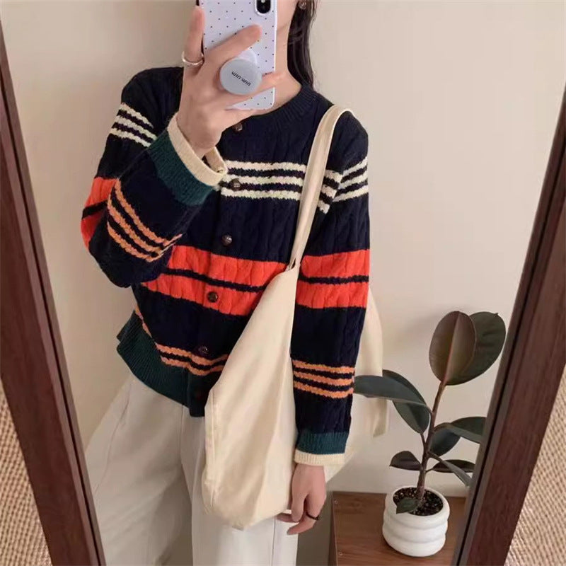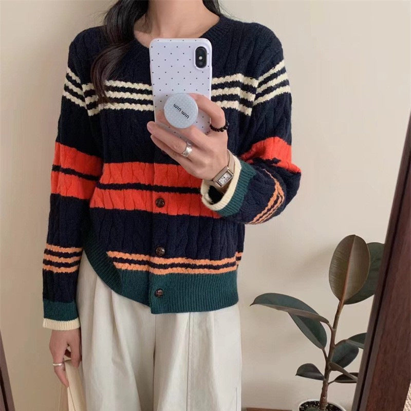 Adotta il comfort e lo stile con il nostro cardigan lavorato a maglia coreano, perfetto per l'autunno e l'inverno. Questo modello versatile, con il suo design a righe e la vestibilità aderente, è ideale per tutte le occasioni, sia per il lavoro che per un'uscita casual. 🌟
