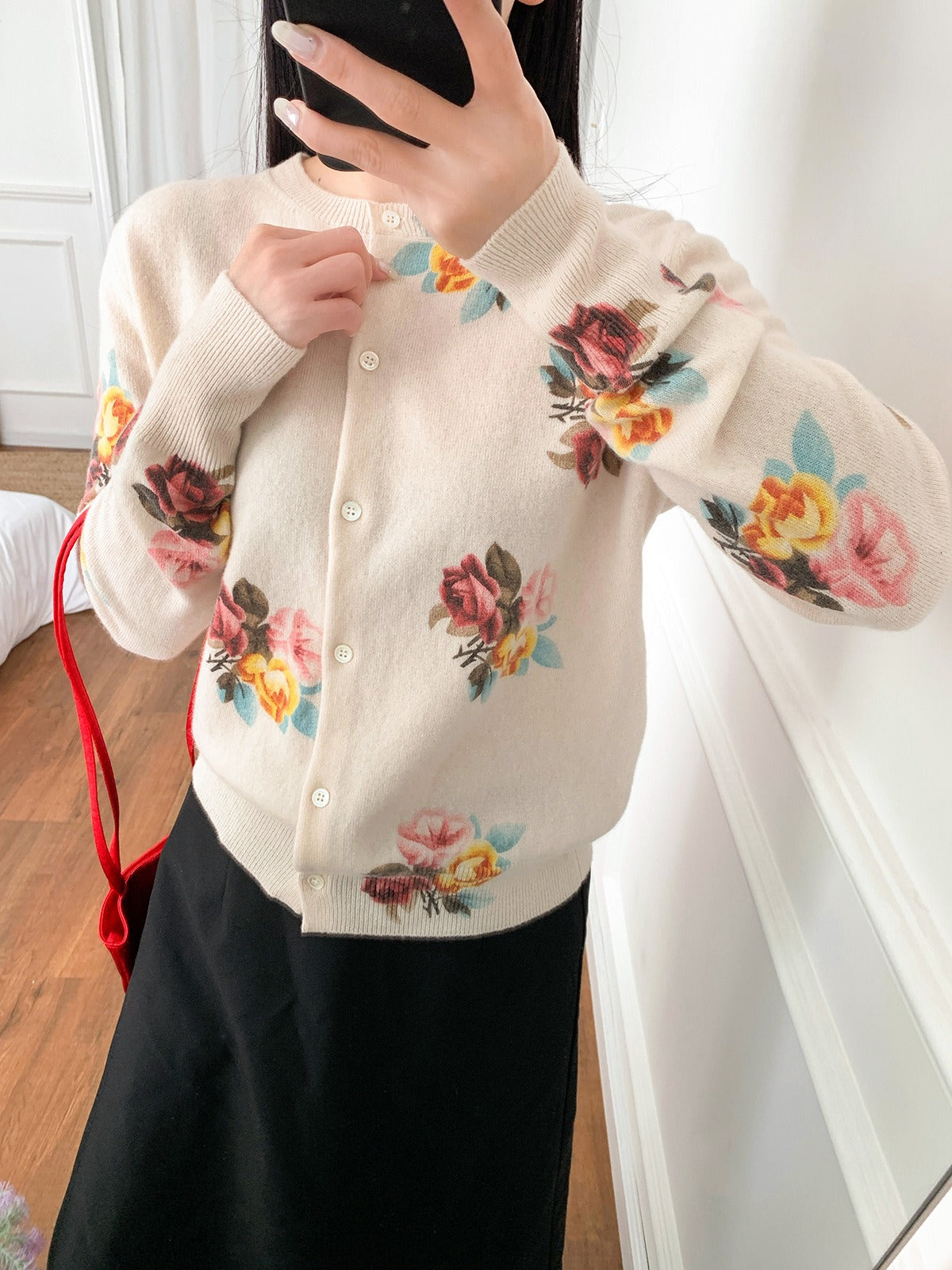 Adotta un look elegante e raffinato con il nostro cardigan floreale coreano in lana. Questo cardigan a girocollo e maniche lunghe è perfetto per uno stile casual e chic. 🌸
