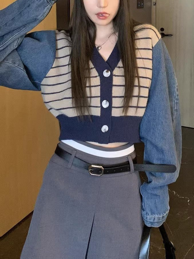 Scegliendo questo maglione a righe, opti per un capo che unisce comfort e stile, aggiungendo un tocco di moda coreana al tuo outfit.