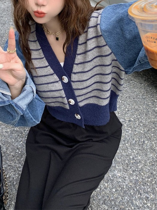 Adotta un look di tendenza con il nostro maglione a righe con scollo a V, perfetto per ogni occasione. Questo maglione a maniche lunghe è ideale per le giornate fresche e aggiunge un tocco di stile coreano al tuo guardaroba. 🌟