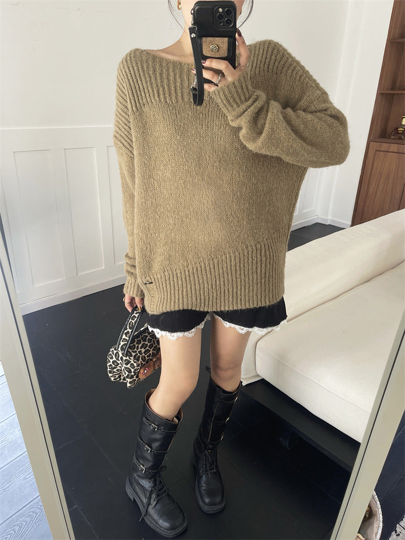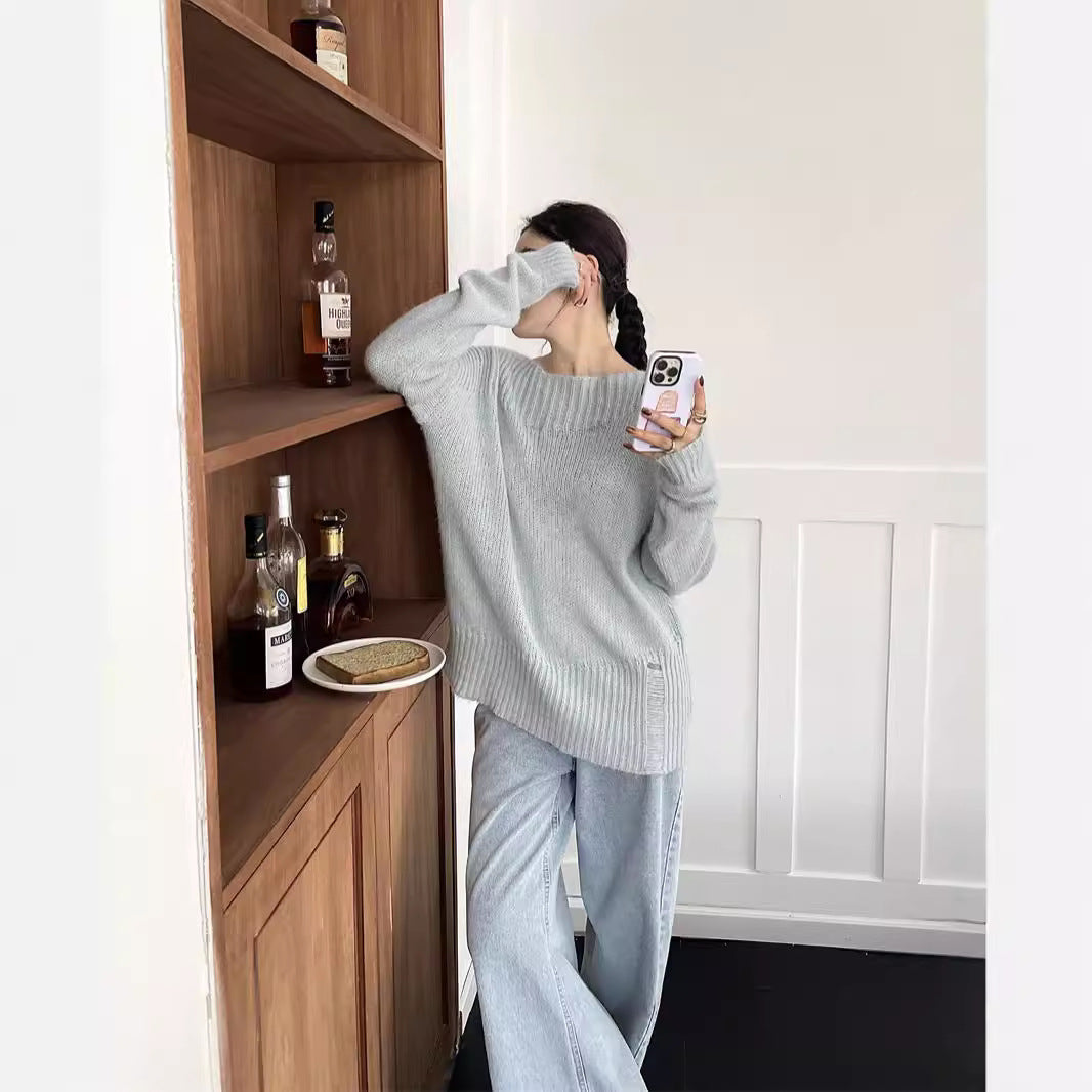 Adotta un look chic e casual con il nostro maglione coreano con spalle scoperte. Questo maglione a maglia larga, con maniche lunghe e scollo asimmetrico, è perfetto per uno stile trendy e raffinato. 🌟