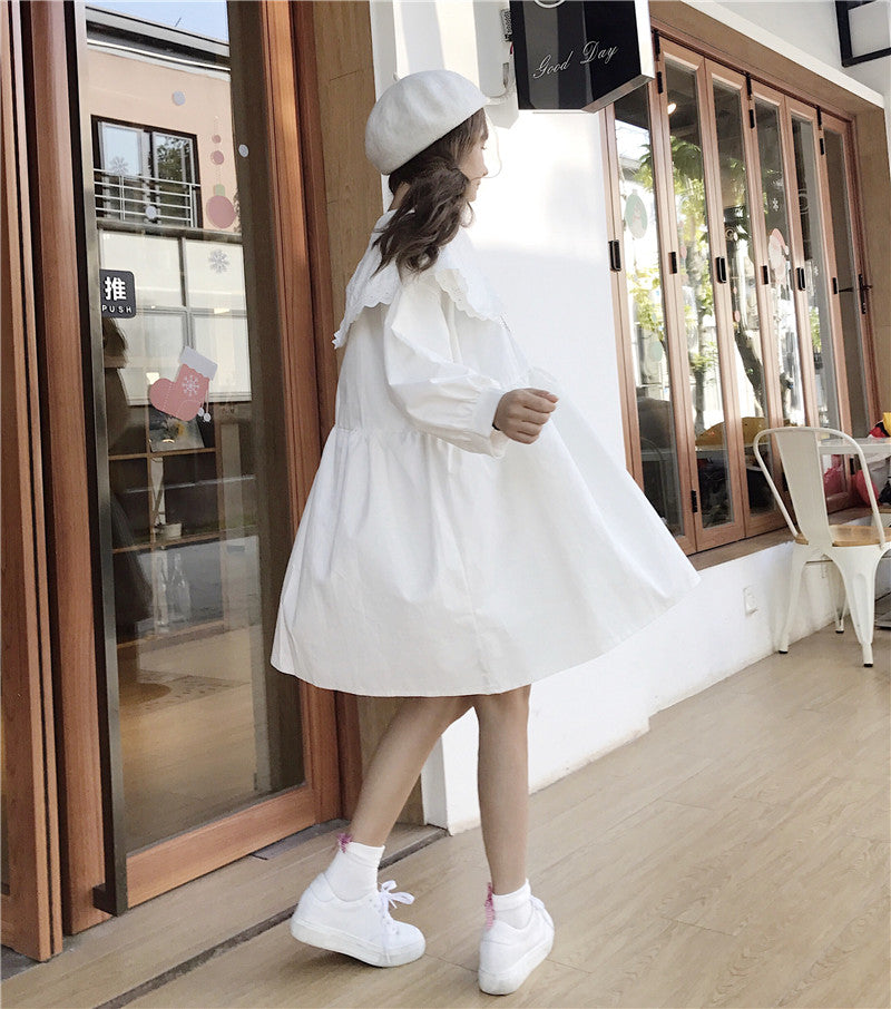Impreziosite il vostro guardaroba con questo elegante abito coreano a doppio colletto. Il suo design unico con un patchwork di pizzo offre un look sofisticato e di tendenza. 🌟