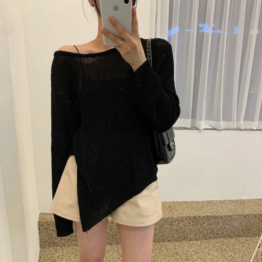 Ravviva il tuo guardaroba con il nostro maglione a spalle scoperte per un look casual e chic! Il design ampio e confortevole lo rende una scelta perfetta per ogni occasione, dal lavoro alle serate. Il suo tessuto leggermente trasparente aggiunge un tocco di mistero al tuo stile. ☀️