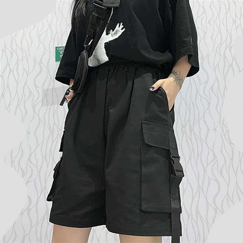 I pantaloncini streetwear che piacciono a tutti gli amanti della moda coreana a Seoul. I giovani coreani adorano questi pantaloncini e puoi indossarli anche tu. Sono disponibili in due colori e si abbinano a molti outfit. Sono pantaloncini con tasche e clip.