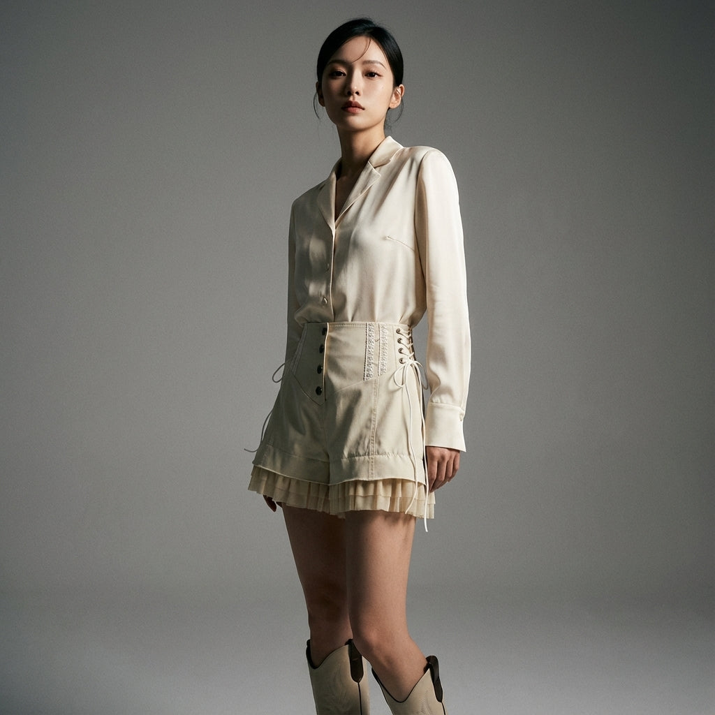 Questi shorts con lacci sono il capo ideale per esprimere la tua personalità e aggiungere un tocco di vivacità ai tuoi outfit estivi, rimanendo fedele all'estetica vibrante della moda coreana.