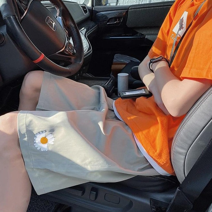 Indossa questi pantaloncini per tutta l'estate per rappresentare la moda coreana. I coreani amano le margherite perché portano felicità. Indossa pantaloncini leggeri e comodi con un fiore sulla coscia. Sono un capo corto e comodo, ideale per fare sport.