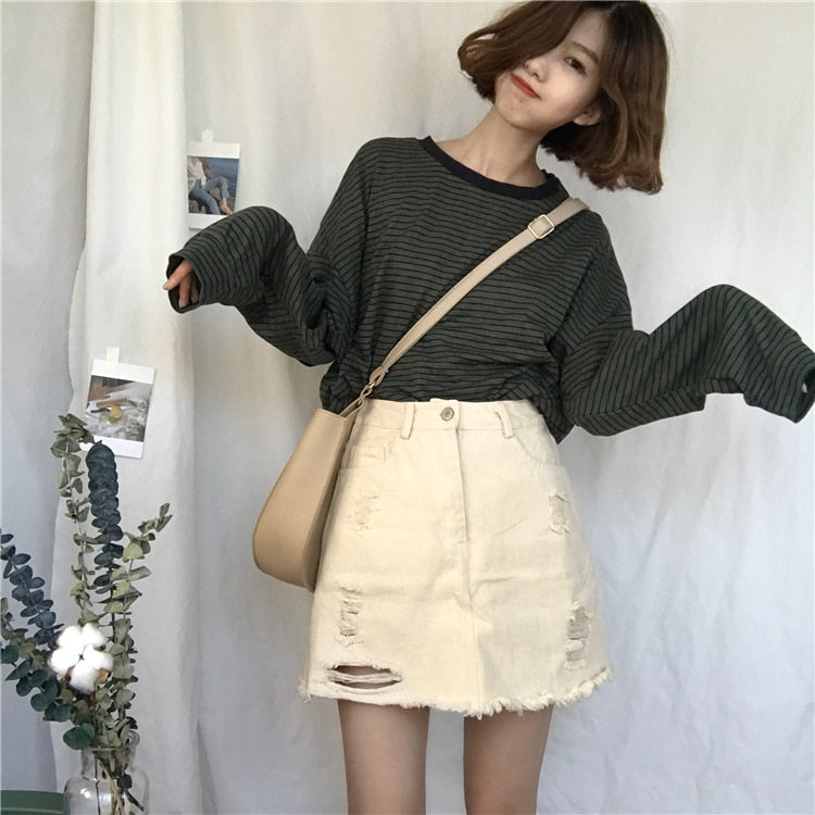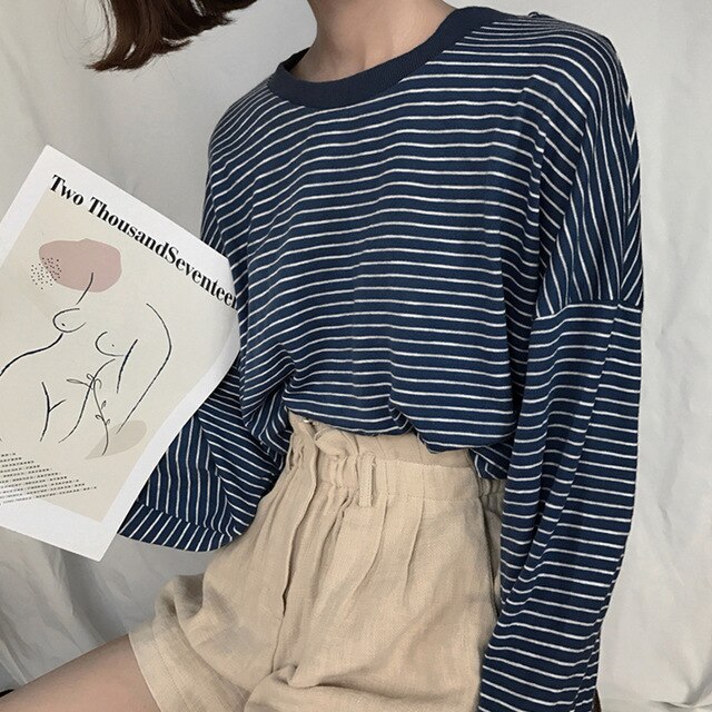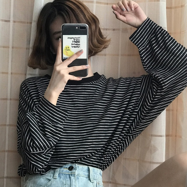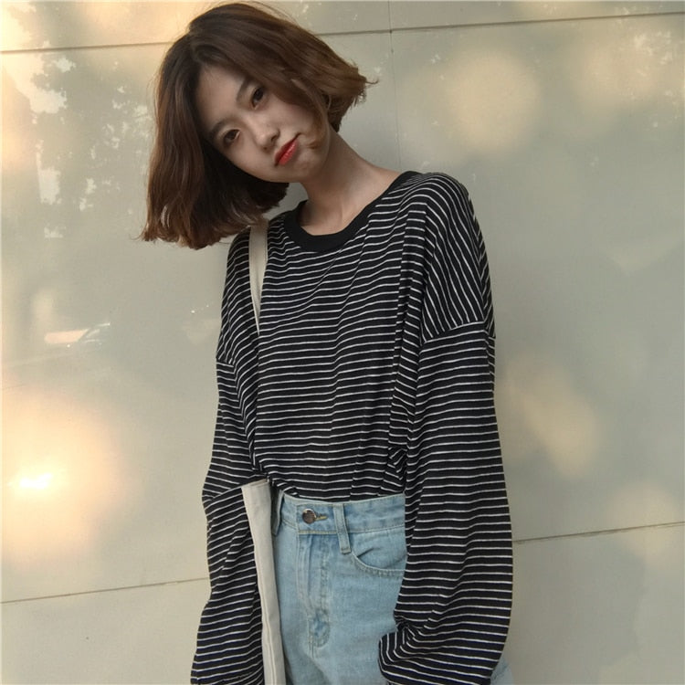 La T-shirt a righe sottili è molto spesso indossato in Corea del Sud! È un capo comune che si può incontrare ovunque a Seoul.
