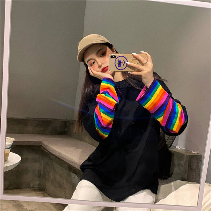 Una T-shirt a maniche lunghe nei colori dell'arcobaleno.