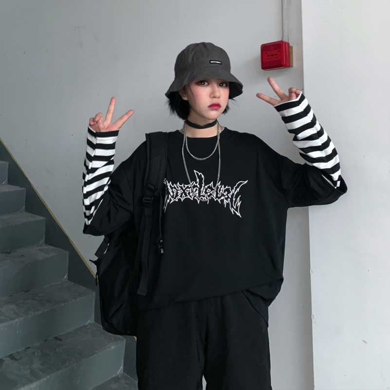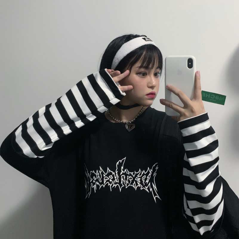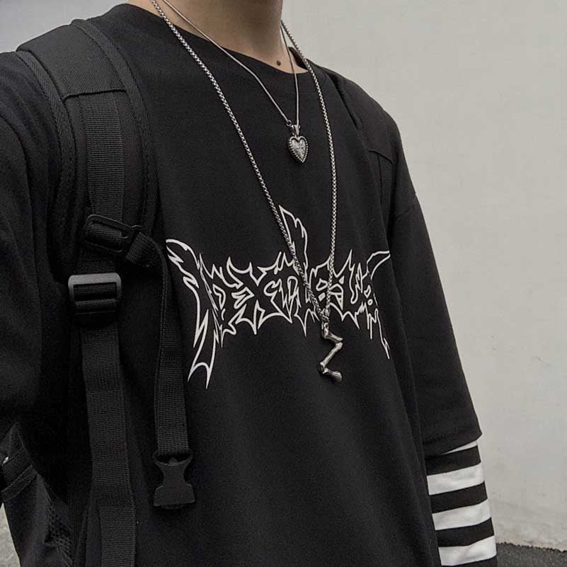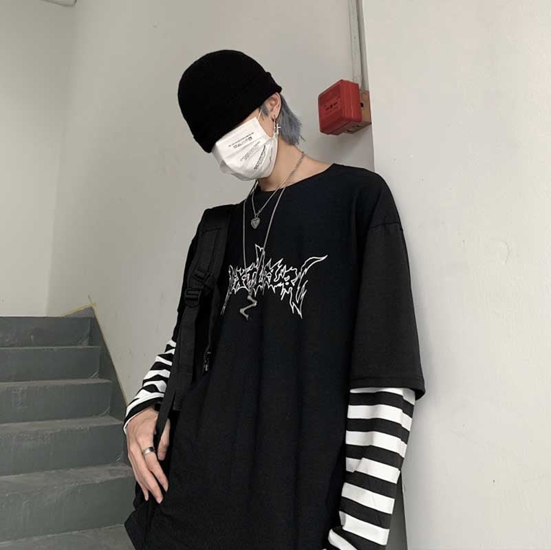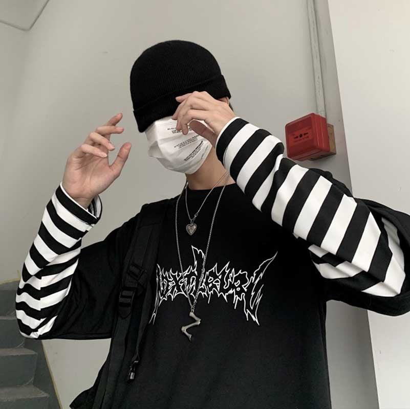 T-shirt a maniche lunghe in stile underground coreano. Comodo, morbido e flessibile.