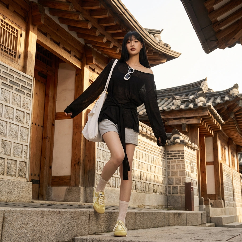 - Stile: Moda coreana, Streetwear, Tendenza. Questo top incarna lo spirito casual e chic della K-fashion, perfetto per un look moderno e deciso.