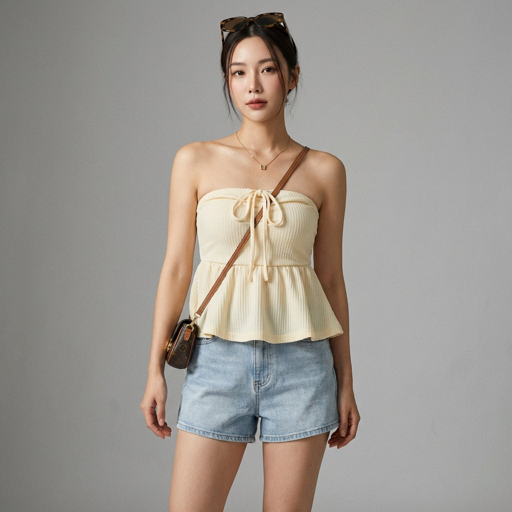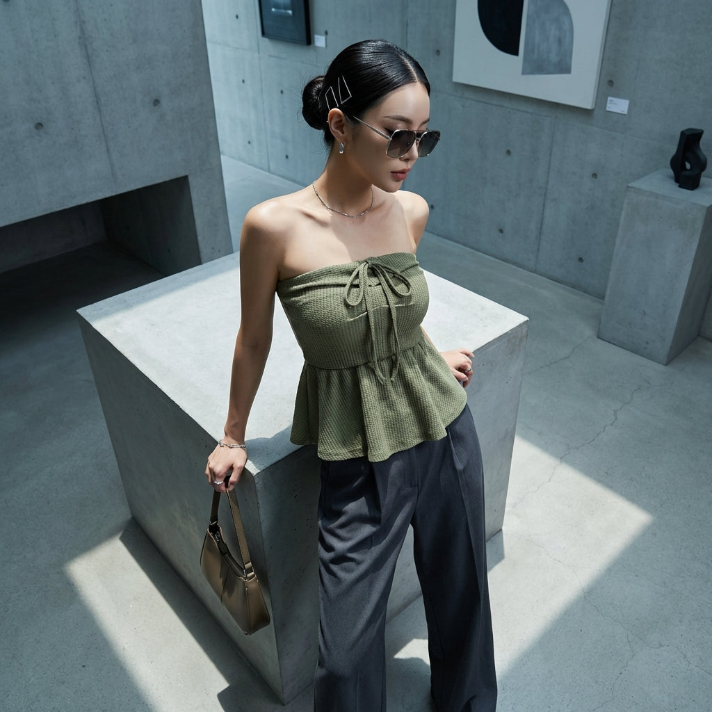 - Stile: Moda coreana, Streetwear, Estivo, Audace. Questo top incarna lo spirito giovane e dinamico della K-fashion, perfetto per un look casual o più deciso.