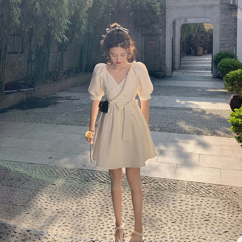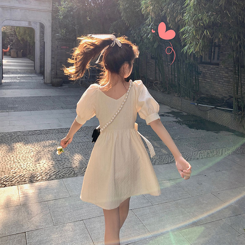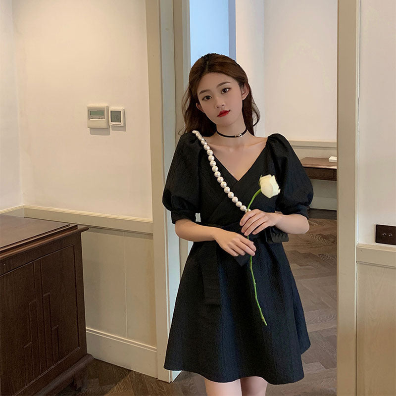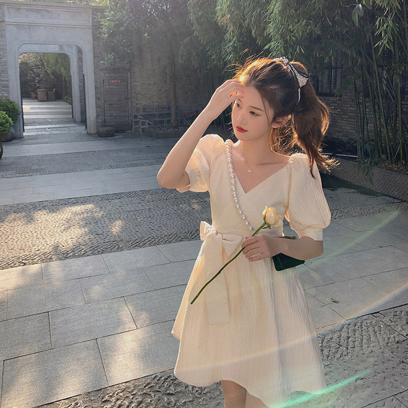 Adotta uno stile fresco ed elegante con il nostro abito coreano a maniche a sbuffo. Realizzato in fibre di poliestere, questo abito con taglio ad A e scollo a V è perfetto per le belle giornate. Le sue maniche a sbuffo aggiungono un tocco di femminilità e leggerezza al tuo outfit 🌸