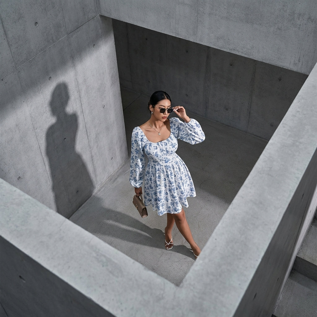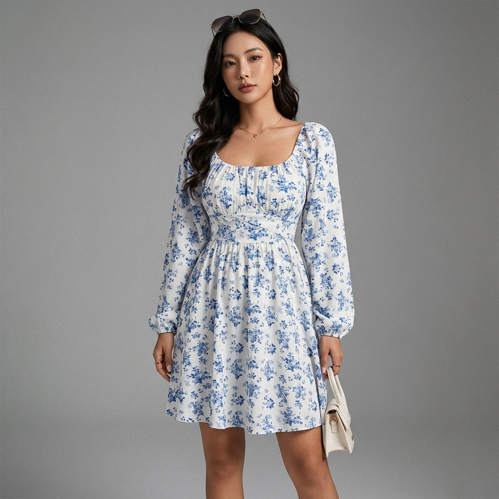 Adotta un look fresco ed elegante con il nostro vestito corto a collo quadrato, impreziosito da un delicato motivo floreale. Il suo taglio aderente valorizzerà la tua silhouette per un'allure piena di temperamento! 🌸
