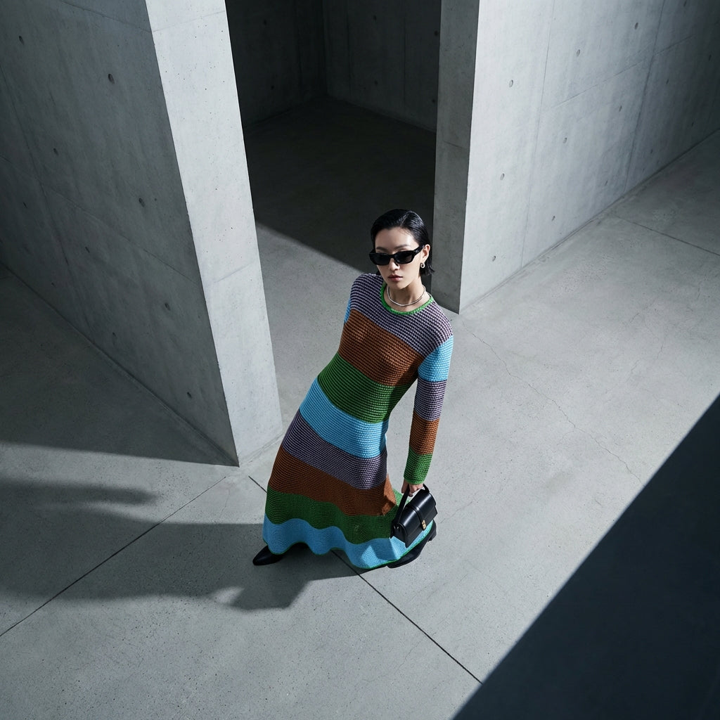 Questo abito in maglia bicolore è un must-have per chi cerca un capo versatile, capace di adattarsi a uno stile streetwear come a un outfit più sofisticato, il tutto riflettendo le ultime tendenze K-fashion.