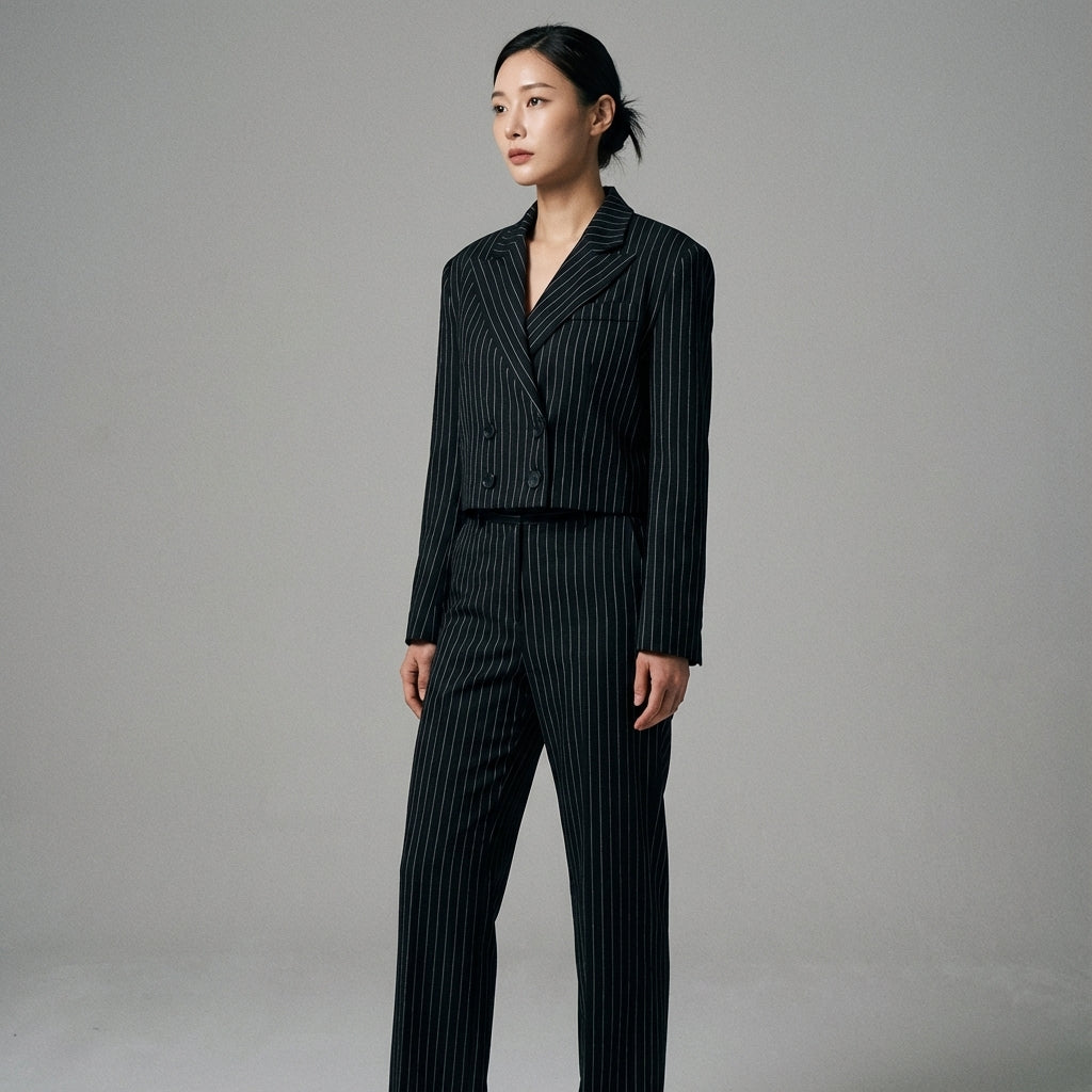 Adotta un look sofisticato e moderno con il nostro blazer a righe nero, ideale per un outfit chic e casual. Il suo taglio dritto e le righe discrete aggiungono un tocco di eleganza intramontabile al tuo guardaroba! ✨
