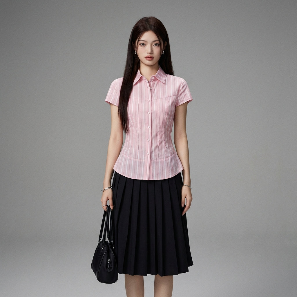 Adotta un look fresco ed elegante con la nostra camicia rosa a righe, perfetta per un'allure femminile e moderna. Il suo taglio aderente valorizzerà la tua silhouette con chic e discrezione! 🌸